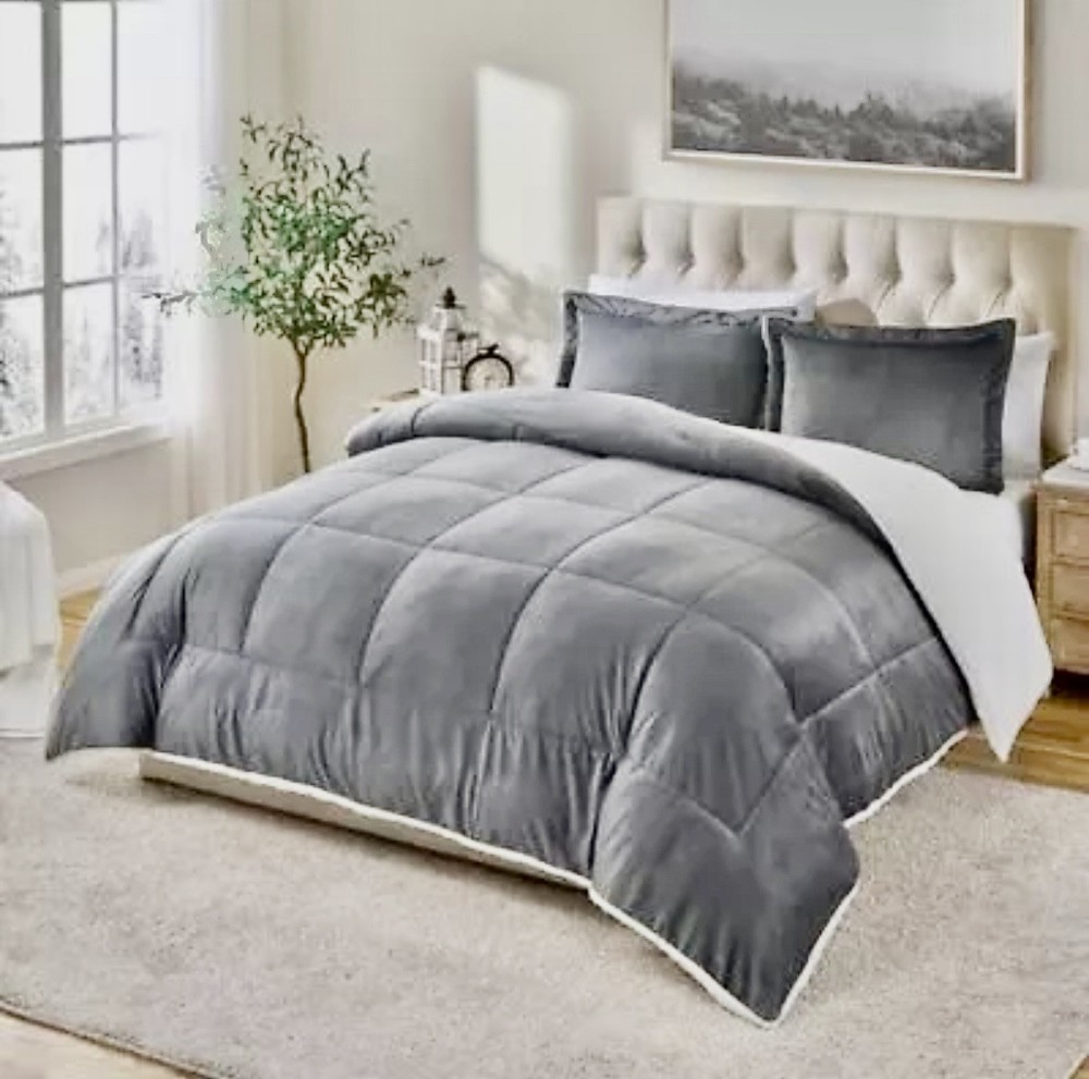 Reversible Faux Fur & Sherpa-Lined Twin Comforter Set – Luxurious Down Alternative Bedding for Cozy Comfort