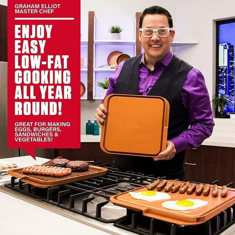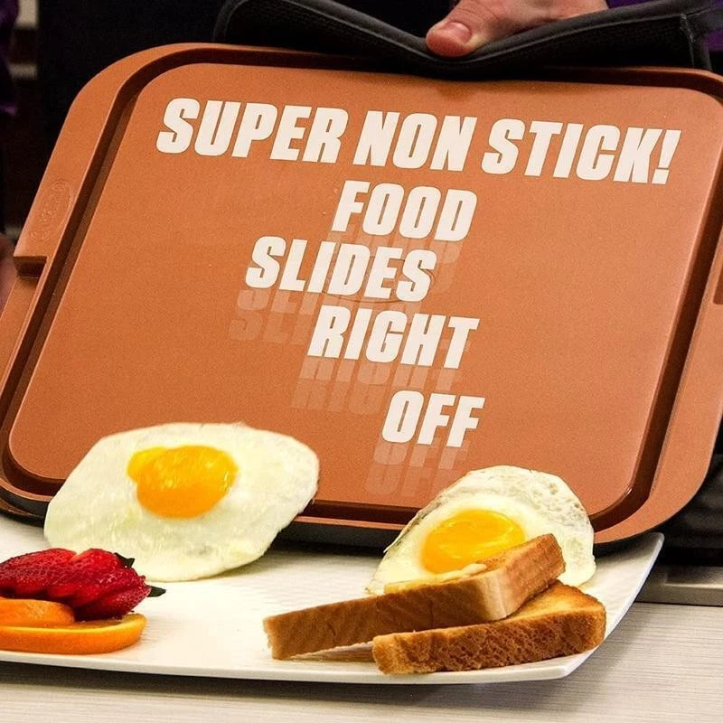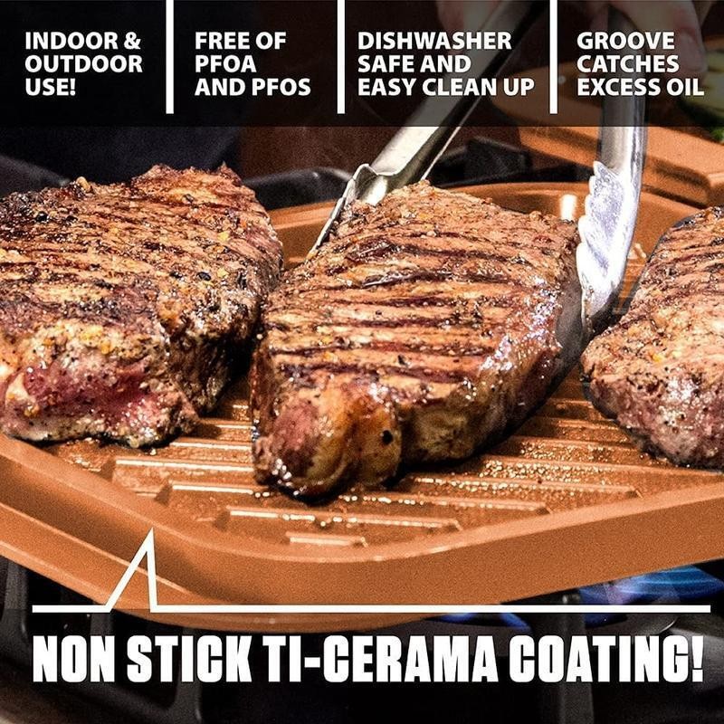 You may also like 5.0QT Non Stick Ceramic Sauté Pan With Lid Easy To Clean for Home Dorm US 28.46 USD 29.96 USD Free shipping 5% off 11" Nonstick Deep Fry Pan W/ Lid Handle Oven Safe Durable Dishwasher Safe Home 48.68 USD 51.24 USD Free shipping 5% off Easy Care Ceramic Non-Stick 5 Quart Jumbo Cooker with Lid for Home Kitchen US 38.9 USD 40.95 USD Free shipping 5% off 10 In Deep Frying Pan W/ Glass Lid Dishwasher Safe Durable Cooking Aluminum Red 47.5 USD 50.0 USD Free shipping 5% off 5Qt Saute Pan Non Stick Lightweight Durable Dishwasher Oven Safe Kitchen Ceramic 53.34 USD 56.15 USD Free shipping 5% off Nonstick Aluminum Dutch Oven 5qt Kitchen Cookware Easy Clean Durable Versatile 35.55 USD 37.42 USD Free shipping 5% off 5QT Saute Pan Toxin Free Ceramic Lightweight Durable Dishwasher-Safe Non-Stick 53.34 USD 56.15 USD Free shipping 5% off 14" Nonstick Fry Pan Heavy Gauge Aluminum Dishwasher Safe Cookware Kitchen Tool 47.48 USD 49.98 USD Free shipping 5% off 10" Open Fry Pans W/ Soft Grip Handle Ceramic Nonstick Dishwasher Safe Yellow 24.5 USD 25.79 USD Free shipping 5% off 12in Aluminum Nonstick Fry Pan Soft Touch Handle Even Heat Sauté Cooking Kitchen 17.77 USD 18.71 USD Free shipping 5% off 10 Inch Durable Enamel Fry Pan Dishwasher Safe Induction Safe Cast Iron Cookware 28.49 USD 29.99 USD Free shipping 5% off Nonstick Fry Pan Set 2 Pack Hard Anodized Aluminum Sauté Cookware Oven Safe New 55.03 USD 57.93 USD Free shipping 5% off Make family meals and parties a breeze with the Gotham Steel XL 22" Reversible Grill and Griddle Pan, designed to accommodate more food in one go. This extra-large pan features a reversible double-sided cooking surface with raised ridges on one side for perfect grill marks and a smooth, flat griddle on the reverse. The titanium-reinforced nonstick ceramic coating lets you cook healthier meals with little to no butter or oil, while the pan remains PTFE, PFOA, PFOS, lead, and cadmium free. Suitable for use indoors and outdoors, this versatile pan is compatible with gas, electric, glass ceramic, and propane grills, and is oven safe up to 500°F. Plus, it’s dishwasher safe, making cleanup effortless. Large Reversible Grill Griddle Flat Top Includes: 22" x 12" reversible grill griddle pan Extra-Large Reversible Grill & Griddle: At 22" x 11", this oversized pan is perfect for cooking large portions for family meals or parties. Grill steaks, burgers, and vegetables on the ridged side, or flip it over to cook pancakes, bacon, and eggs on the smooth griddle side. The spacious surface allows you to cook more food at once, saving time and effort. Healthy Nonstick Ceramic Coating: The titanium-reinforced ceramic nonstick surface lets you cook with little to no oil or butter, delivering healthier meals without compromising on taste. Effortlessly grill juicy burgers or fry eggs while ensuring easy food release and simple cleanup. This pan is PTFE, PFOA, PFOS, lead, and cadmium free for safer cooking. Indoor & Outdoor Versatility: Designed for both indoor and outdoor cooking, this pan is compatible with all stovetops, including gas, electric, and glass ceramic, as well as propane grills. Perfect for camping trips or backyard barbecues, or for preparing family-sized meals in your kitchen. It's oven safe up to 500°F, offering even more cooking options. Durable Construction with Raised Ridges: The raised ridges on the grill side help achieve professional-quality grill marks on steaks, burgers, and chicken, while draining excess grease for healthier cooking. The flat griddle side provides even heat distribution, making it ideal for frying and searing a variety of foods. Built to last with a strong aluminum body for long-term durability. Easy to Clean – Dishwasher & Oven Safe: Cleaning up after cooking is quick and hassle-free with this dishwasher-safe pan. The titanium-reinforced nonstick surface is highly resistant to scratches, making it safe to use with metal utensils, and the pan’s generous size ensures you can cook for a crowd without the mess. Features: Nonstick, Oven Safe, Rust Resistant Brand: Gotham Steel Material: Ceramic, Titanium, Aluminum Nonstick: Y Size: 22" x 12" Color: Copper Cleaning, Care & Maintenance: This reversible grill griddle pan is Dishwasher Safe. To extend the lifetime of your grill griddle pan, wash gently with mild soap and water and use a non-abrasive sponge. You may also like 48" Above Ground Pool Cove Peel and Stick 19 Pack Swimming Pool Liners Wall Foam 55.03 USD 57.93 USD Free shipping 5% off 2-In-1 2 Burner Grill Camp Stove Propane Adjustable Cooking Stainless Steel New 111.95 USD 117.84 USD Free shipping 5% off 3 Pack Drain Clog Remover Septic Safe Liquid Bleach Free Cleaner 2 Uses 2.4 Lb 42.18 USD 44.4 USD Free shipping 5% off Stainless Steel 3Qt Induction Saucepan W/ Lid Dishwasher Safe Cooking Pan New 25.94 USD 27.3 USD Free shipping 5% off Wall Mounted Storage Bins 30 Compartments Tool Organizer Easy Access Plastic New 28.92 USD 30.44 USD Free shipping 5% off Portable Toilet Freshwater Flush 4gal Leakproof Easy Clean Camping RVing Boating 104.5 USD 110.0 USD Free shipping 5% off Cast Iron Bench Grinder Pedestal Stand w/ Water Pot Tray Heavy Duty Working Tool 66.6 USD 70.11 USD Free shipping 5% off Round Slow Close Toilet Seat Quick Release Adjustable Durable Rice Husk New 29.55 USD 31.1 USD Free shipping 5% off All-Season Reversible Comforter Twin XL Coral Microfiber Lightweight 68"x90 New 29.55 USD 31.11 USD Free shipping 5% off Adjustable Height Folding Table Portable Stain Resistant Outdoor Indoor Use 46.25 USD 48.68 USD Free shipping 5% off Double Flip Rotating Waffle Maker Dual Cooking Plates Nonstick Breakfasts Black 75.9 USD 79.89 USD Free shipping 5% off Mushroom Storage Ottoman Collapsible Upholstered Indoor Organizer Seating 200lb 56.76 USD 59.75 USD Free shipping 5% off