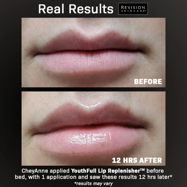Revision Skincare® YouthFull Lip Replenisher® Award-Winning Lip Plumper | Deep Hydration | Youthful Volume & Definition Net Weight: 0.33 oz | 9.4 g Formulated For: All skin types Ideal For: Dry, aging, or filler-enhanced lips Product Overview The YouthFull Lip Replenisher® by Revision Skincare® is a scientifically advanced lip treatment that delivers instant and long-term rejuvenation. Powered by Hyaluronic Acid and potent antioxidants , this award-winning formula targets visible signs of lip aging, replenishing youthful volume, contour , and definition . Whether you're looking to enhance your lips naturally or support filler treatments, this lip plumper provides the essential care your lips need to stay hydrated, smooth, and visibly plumped . Key Benefits ✔ Helps restore youthful lip volume and contour ✔ Visibly plumps lips while smoothing lines and wrinkles ✔ Provides immediate and long-lasting hydration ✔ Soothes dry, dehydrated lips ✔ Defends against environmental stressors ✔ Restores natural, healthy-looking lip color ✔ Long-wearing formula locks in active benefits Usage Apply directly to clean, dry lips as needed. Ideal for use alone or layered with lip color. Not intended for broken or healing skin. Wait until the area is fully recovered post-procedure. Who It’s For This product is perfect for: Anyone wanting fuller, smoother, more defined lips Individuals seeking an age-defying lip solution Those considering or maintaining lip fillers