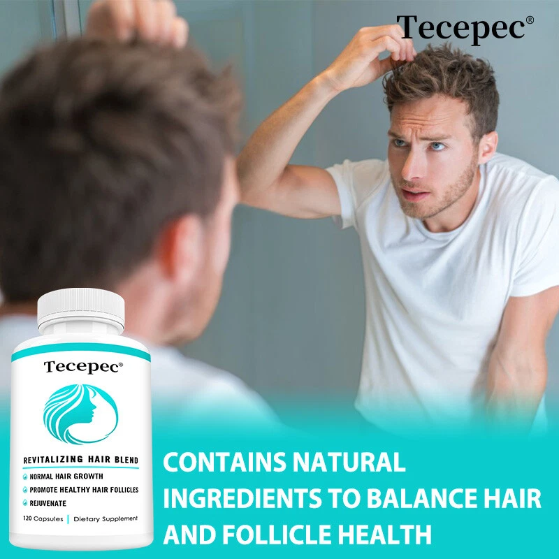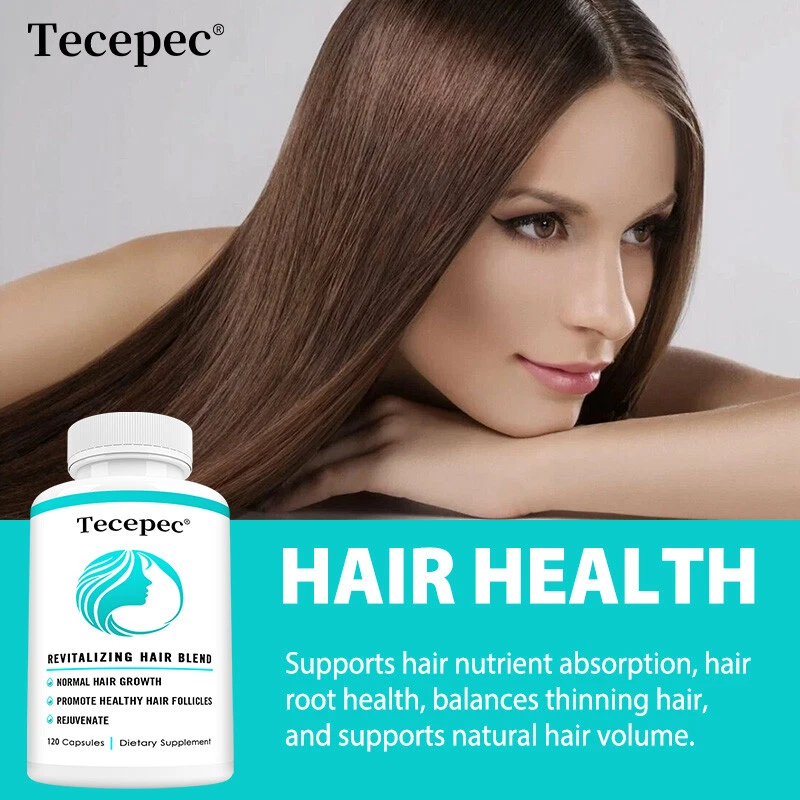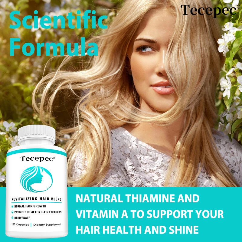 Healthier, Thicker, Longer Hair - Tecepec is uniquely formulated to promote healthy hair growth, regulate sebum production, increase keratin hair protein, and naturally strengthen hair follicles from the inside out. These powerful hair vitamins fight the effects of hair loss from the inside out, giving you longer, thicker, fuller, and shinier hair. Promotes Hair Growth, Volume, and Shine - Tecepec's hair vitamins are formulated with natural ingredients to increase length, density, and promote overall hair health, are rigorously third-party tested for maximum freshness, safety, quality, and efficacy, and are non-GMO, and completely free of gluten, soy, preservatives, and dairy. Targets the Root Causes of Hair Loss - Tecepec's Vitality Blend contains a variety of active ingredients that address the root causes of hair loss. Stress, poor nutrition, and postpartum can lead to excessive thinning, breakage, and hair loss. This hair supplement delivers the whole-body nutrition you need and works with your body chemistry to attack these hair issues from every angle.