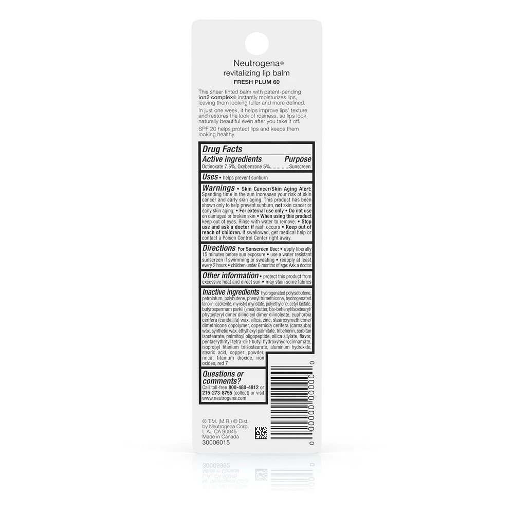Free eBay listing template designed by dewiso.com Neutrogena Revitalizing Tinted Lip Balm with SPF 20, Hydrating Tinted Lip Care with Sunscreen, Moisturizing Sheer Tint for Softer, Healthier-Looking Lips, Sheer Fresh Plum 60, 0.15 oz FREE AND FAST SHIPPING! About this item 0.15 oz Neutrogena Revitalizing Tinted Lip Balm with SPF 20 in Sheer Fresh Plum to protect, hydrate, and visibly improve the texture of lips Tinted balm provides sheer color while softening and smoothing lips, healthier look in one week Designed to provide lightweight moisture and support the appearance of smoother lips with a hint of tint when applied Offers broad spectrum SPF 20 sunscreen to help prevent sunburn and protect delicate lips from UV rays Use daily and reapply every 2 hours; pairs perfectly with Neutrogena MoistureShine Gloss for add-ed shine and hydration Product We offer a 30-Day Return Policy on items which you are not completely satisfied with. You have the option for a full-refund or an exchange of the item. No returns are available on items shipped outside of the US . Shipping We offer Free Shipping to the US and ship within 2 business days of payment, usually sooner. We use UPS express shipping. That's why your products are usually delivered within 3 days . Contact We try our very best to make sure every customer is completely satisfied. If there's a problem , message us! We're happy to help. 24/7 live chat available.