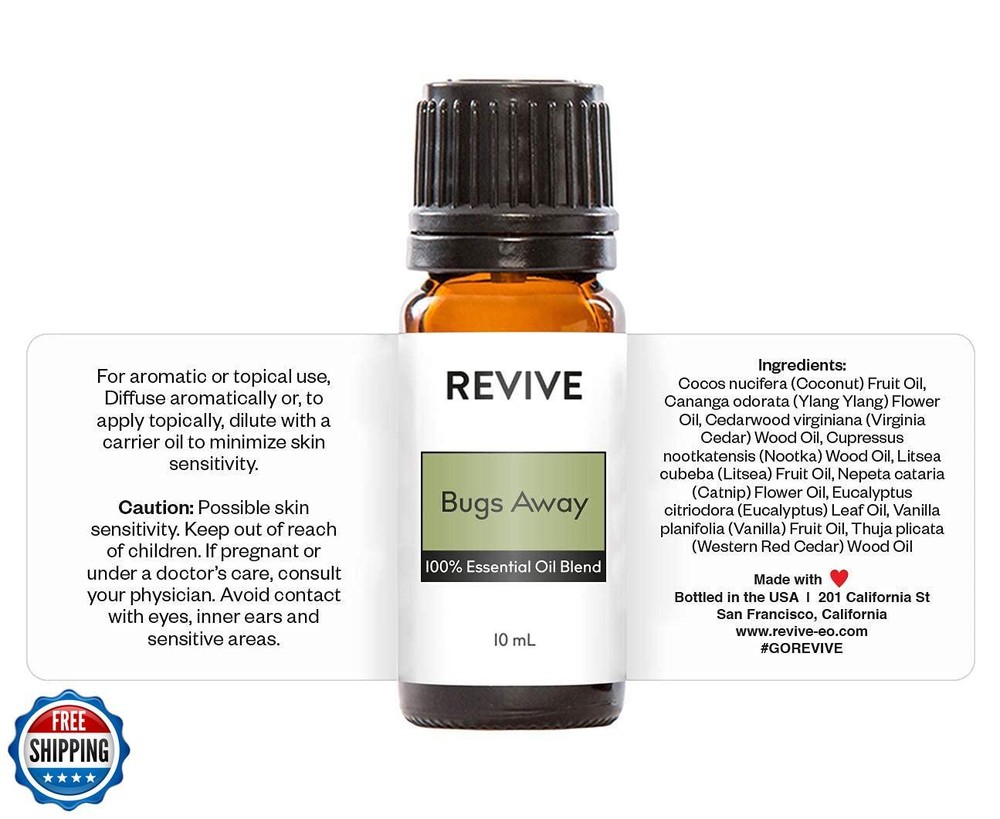 Bugs Away Essential Oil Blend by Revive Essential Oils - 100% Pure Therapeutic Grade, for Diffuser, Humidifier, Massage, Aromatherapy, Topical Features REVIVE Bugs Away is a proprietary blend of Fractionated Coconut Oil, Ylang Ylang Flower, Nootka Wood, Cedarwood Wood, Catnip Plant, Lemon Eucalyptus Leaf, Litsea Fruit, Vanilla Bean Absolute, and Arborvitae Wood essential oils. REVIVE Essential Oils & Blends will promote calm feelings for the body and mind, improve upset stomach, reduce worried feelings, achieve serenity, relieve head and neck tension, keep your home clean. Quality starts with Farms and Sourcing. REVIVE Essential Oils are sourced from around the world, from the specific regions of the world where that species of plant or tree grows best. REVIVE Essential Oils are 100% from Plants. No fillers, carrier oils, or synthetics. REVIVE is proud to sell direct to consumer through the internet. We’re also proud that REVIVE is not an MLM, REVIVE is not sold through distributors/upline. We eliminate the cost of those middlemen, pass the savings on to you, and are able to offer the same quality oils for less. Shipping Free & Fast Shipping: We offer free shipping to most of the USA with a normal delivery time of 3-7 days. However, due to the current situation, additional delivery time (up to 3 weeks) may be required for some items. Alternative Carriers: We may use alternative carriers (e.g., USPS, FedEx, UPS) to ensure your package arrives safely and on time. Due to the use of multiple carriers, we are unable to provide a tracking number automatically. Handling Time: Orders are processed and shipped within 1-2 business days of receiving cleared payment. Shipping Restrictions: Shipping to Alaska, Hawaii, Puerto Rico, Guam, and other US territories may incur shipping charges or delivery restrictions. Please contact us before ordering, or your order can be refunded/cancelled. State Restrictions: Certain items may not be shipped to California due to state regulations. Contact for Tracking Updates: If you require tracking updates or have any concerns about the delivery of your order, please feel free to contact us, and we will be happy to assist you. Return Policy 30-Day Hassle-Free Returns: If you are not completely satisfied with your purchase, you can return the item for free within 30 days of receiving it for a full refund or exchange. Easy Return Process: Contact us, and we will provide you with a prepaid return shipping label and detailed instructions. No Restocking Fee: There are no restocking fees for returns. However, the buyer is responsible for return shipping costs if the return is not due to a seller"s error. Refund Processing: Refunds will be processed within 1 business day of receiving the returned item in its original condition. Feedback Your feedback is extremely important to us. We strive to provide the best products and customer service possible. If you are satisfied with your purchase, please take a moment to leave us a positive review. If you have any concerns or issues with your order, please contact us before leaving negative feedback. We are committed to resolving any problems and ensuring your satisfaction. Contact Us If you have any questions or concerns, please feel free to reach out to our customer support team. You can contact us through the eBay messaging system. We are available Monday to Friday, 9:00 am to 5:00 pm EST, and we will do our best to respond to your inquiry within 24 hours. Thank you for supporting our small family business!