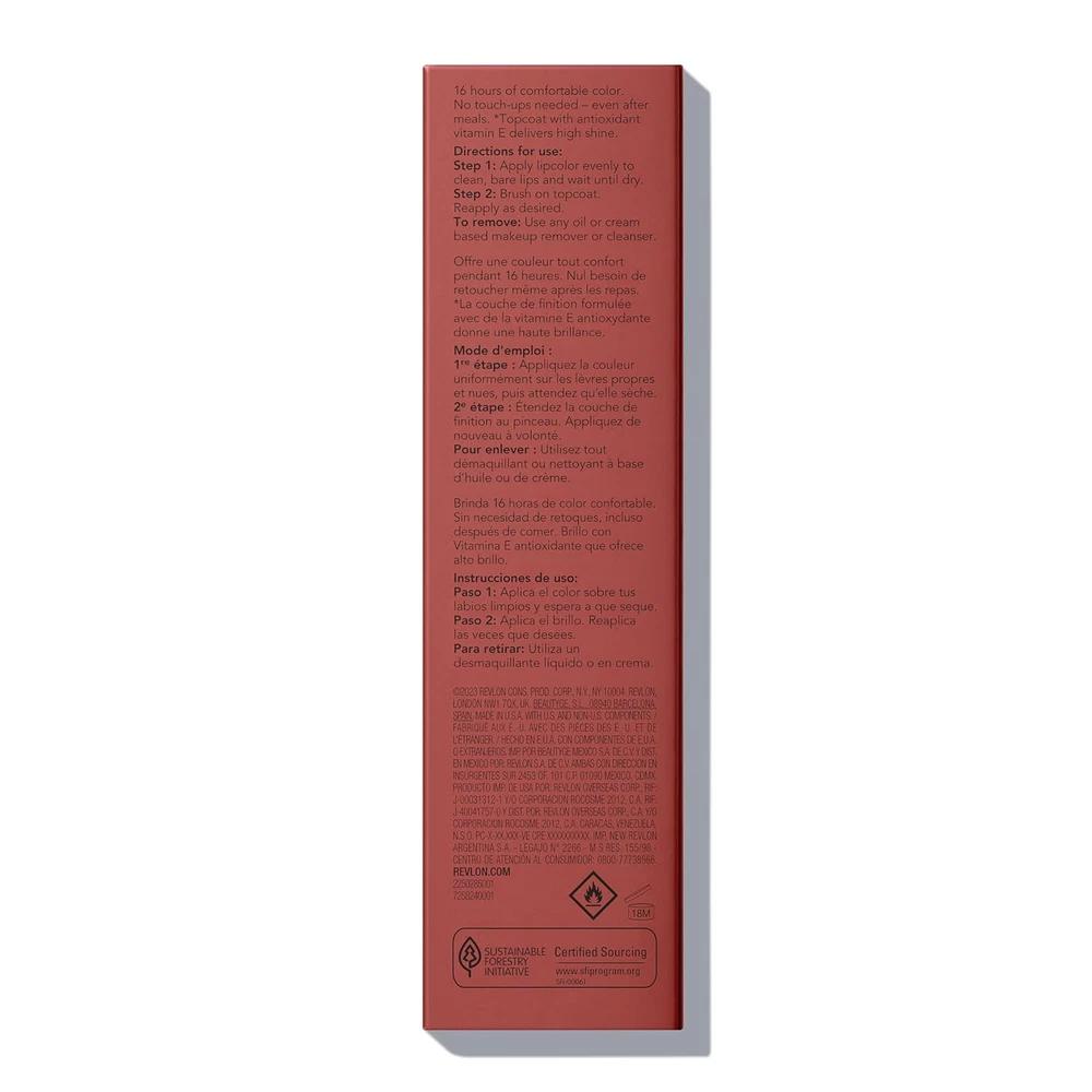 Store New Arrivals Add to Favorite View Feedback Contact Revlon Liquid Lipstick with Clear Lip Gloss, Colorstay Overtime Lipcolor, Dual Ended with Vitamin E, 350 Bare Maximum, 0.07 Fl Oz Description Item model number 309979380428 Manufacturer Revlon Consumer Products Corp. Color 350 Bare Maximum Finish Type Glossy Brand REVLON Country of Origin USA Skin Type All Is Discontinued By Manufacturer No Item Form Liquid Size 0.07 Fl Oz (Pack of 1) LONG LASTING LIQUID LIPSTICK: Forget touch-ups—this colorful, longwear lipstick lasts up to 16 hours. Pigment stays vibrant without smudging, bleeding, or feathering throughout the day CONDITIONING, GOOD-FOR-YOU TOP COAT: With 99% of its ingredients being moisturizing (including vitamin E and chamomile extract)—the shiny top coat feels so good on lips, and it’s good for you PERFECT, SHINY LIP MAKEUP: Working from the center of your lips outward, swipe on lip color and let it set. Then slick on the glossy top coat for major moisture and shine. Reapply top coat during the day as needed 30 COLORFUL SHADES: From vivid pinks and bold reds, to natural-looking nudes and browns, all 30 kiss-proof shades stays all day LIVE BOLDLY WITH REVLON MAKEUP: Revlon has the high-quality, high-pigment, bold color you need to be yourself. Create any look—day to night, weekday to weekend—with our longwear ColorStay eyeshadows, eyeliners, matte or shiny lipsticks, and foundation Product Description The REVLON ColorStay Overtime Lip color coats your lips with full coverage color and shine for up to 16 hours with no touch ups needed! This semi permanent lip color with color lock technology won't kiss off, feather or bleed. The glossy topcoat is enriched with chamomile and soy extract for moisture rich, shiny, soft lips. Claim based on Nielsen Scantrack Service for lip makeup brands for YTD WE 12/31/2016, Total US and xAOC. Copyright 2016, The Nielsen Company. By REVLON. Brand Story By Revlon ABOUT US We offer the best prices around on high quality products. Our E-store includes media such as books, movies, music and games while offering electronics, toys, sporting apparel, clothing, tools, general home, garden items and more. SHIPPING We are always working hard to ensure your package arrives as soon as possible. Please understand that some factors like weather, high postal traffic, and the performance of shipping companies are outside of our control. We offer free shipping to the lower 48 states and ship within 2 business days of payment, usually sooner. We do not accept P.O. Boxes. Please provide a physical address. RETURNS We offer a 30-Day Return Policy on items which you are not completely satisfied with. You have the option for a full-refund or an exchange of the item. No returns are available on items shipped outside of the USA. PAYMENT We accept PayPal. CONTACT US This page content is yet to come Please ad us to your favorite seller and visit again later Thank You CUSTOMER SATISFACTION We try our very best to make sure every customer is completely satisfied. If there's a problem, message us! We're happy to help.