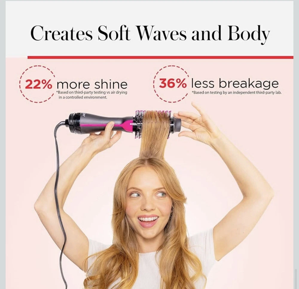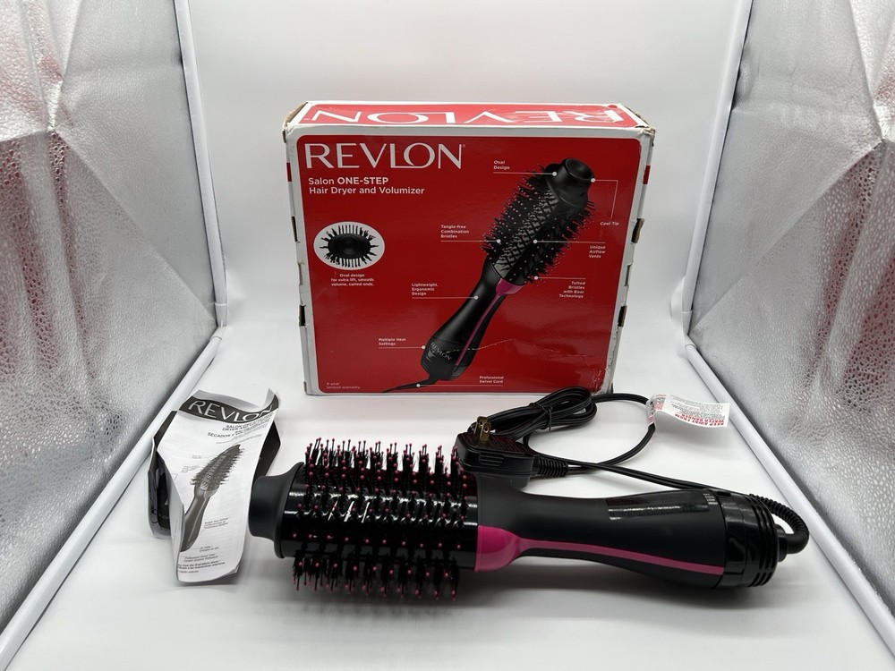 Revlon One-Step Hair Dryer Volumizer Hot Air Brush Black RVDR5222 Item: Q8(12) Used, tested it works. Salon-Quality Blowouts at Home - With REVLON One-Step Volumizer Hair Dryer and Styler, get salon-like hair in up to half the time and enjoy 22% more shine, 30% less frizz, and less chance of damage. Get ready for volume and waves in just one easy step! Style Easier and Smarter -This fan-favorite thermal brush is the new go-to hair styling product for lifted roots and soft waves. Thanks to the ceramic coating and ionic technology, your hair will look sleek, smooth, and shiny! Simplified But Versatile - Let the Revlon Hair Dryer Brush unlock flexible styling possibilities with the cool, low, and high heat settings. Damp to dazzling has never been easier, just hold the volumizer for 2-3 seconds for extra lift at the roots! Your Shortcut To Fabulous Hair - The Revlon Volumizer has a 2.8” oval blow dryer hair brush with nylon pins and natural bristles. It smooths, lifts, and curls like a pro for volume, bounce, and shine. Great for all hair types and best with mid-long hair! All Your Styling Needs in One-Step - Dry and style like a pro in one easy step! Revlon’s One-Step Hair Styling Collection transforms damp, dull hair into sleek perfection. Say goodbye to hassle and hello to confidence with effortless, stunning results.