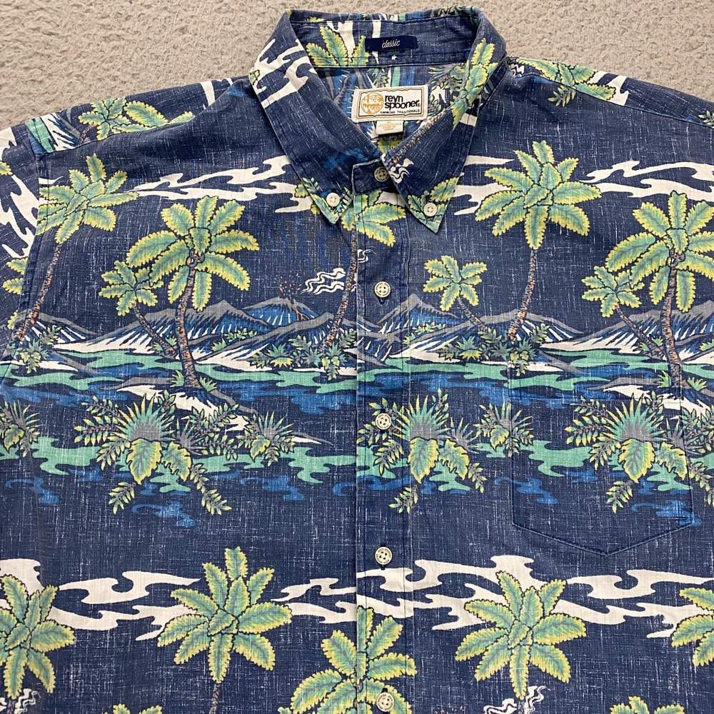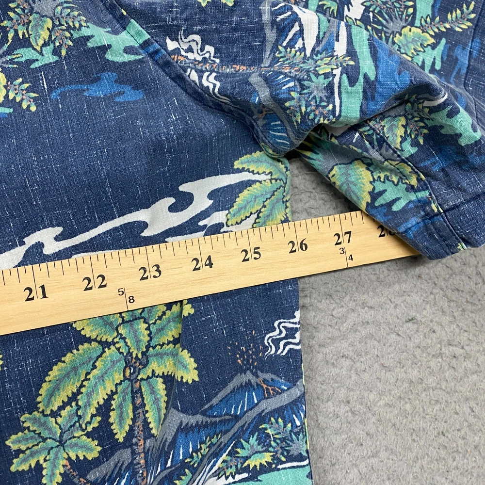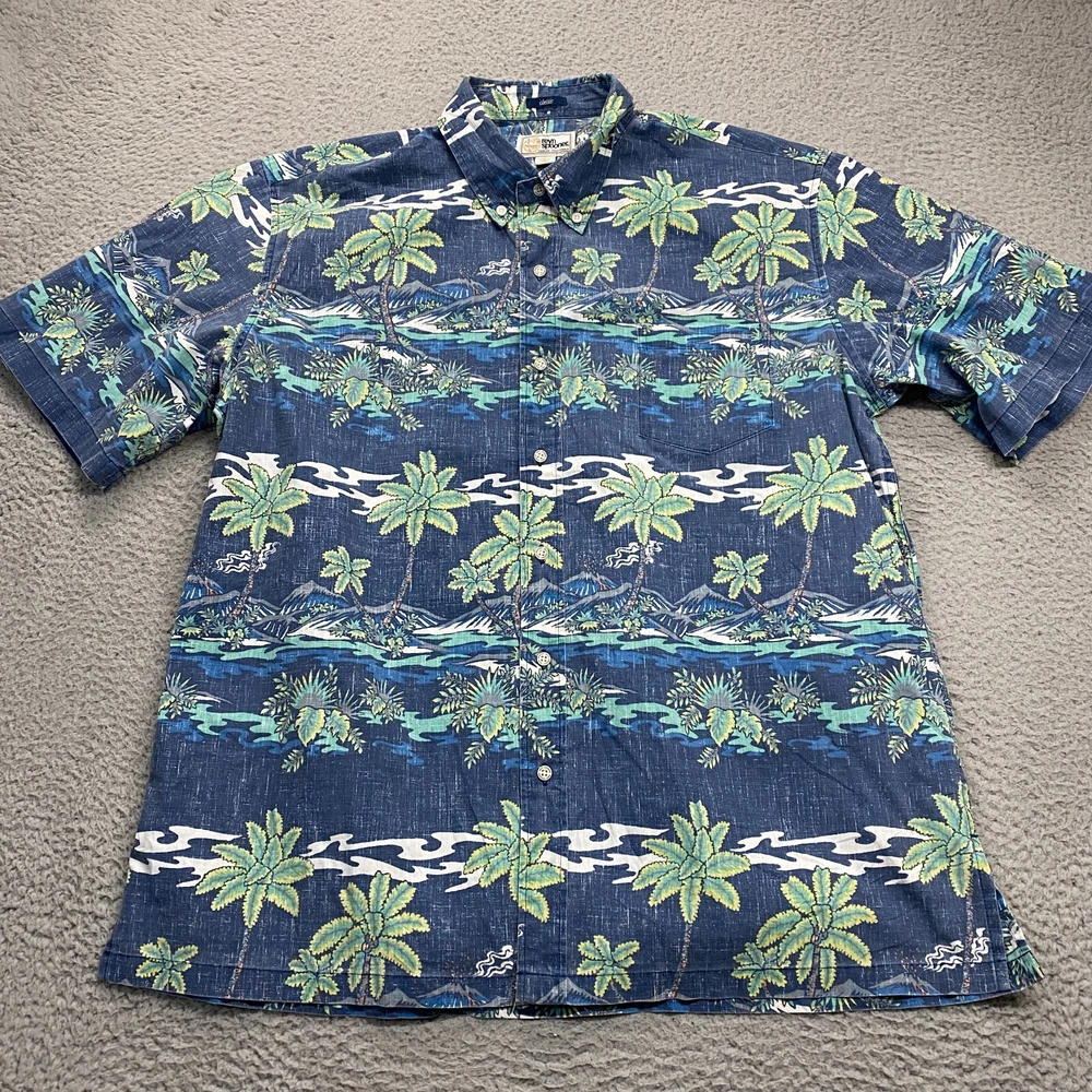 Reyn Spooner Hawaiian Shirt Mens XL Blue Floral Aloha Tropical Island Vacation Shirt is a bit faded. See photos for measurements