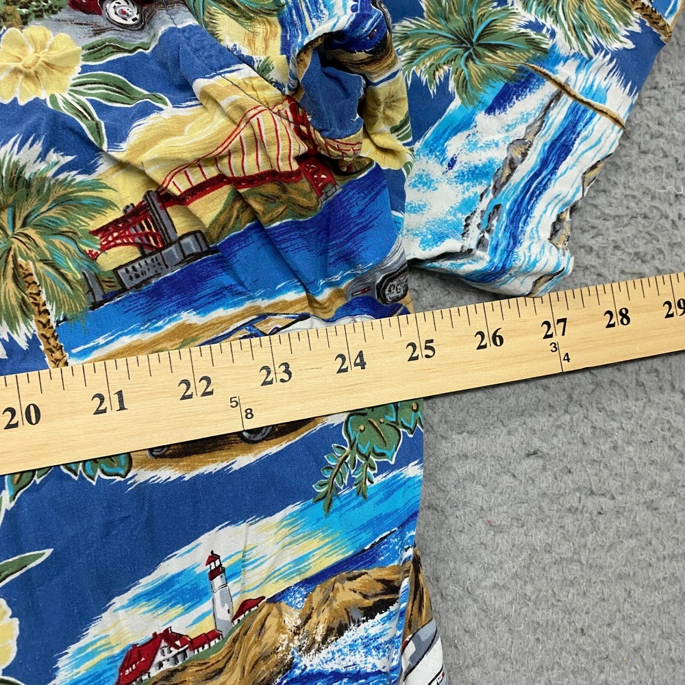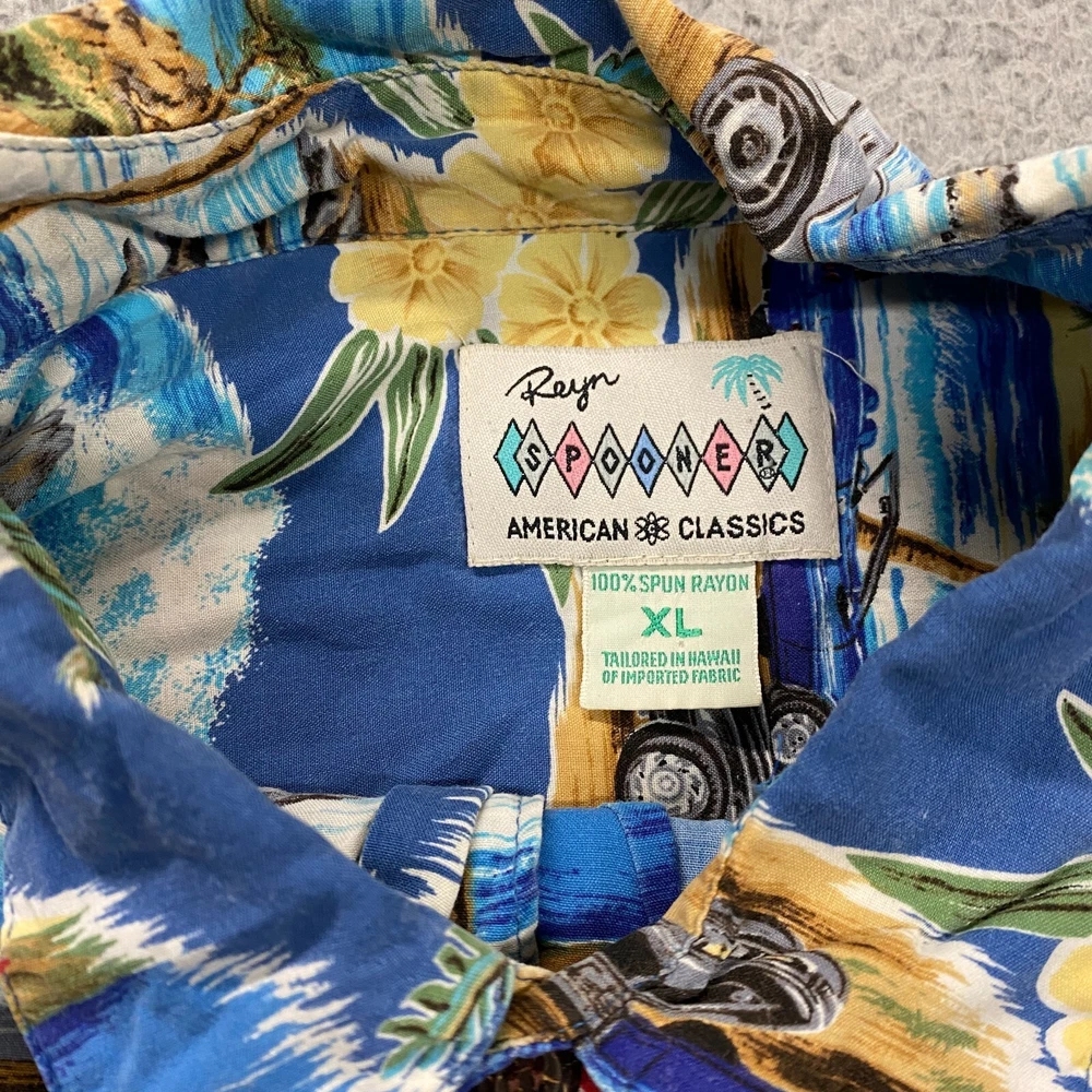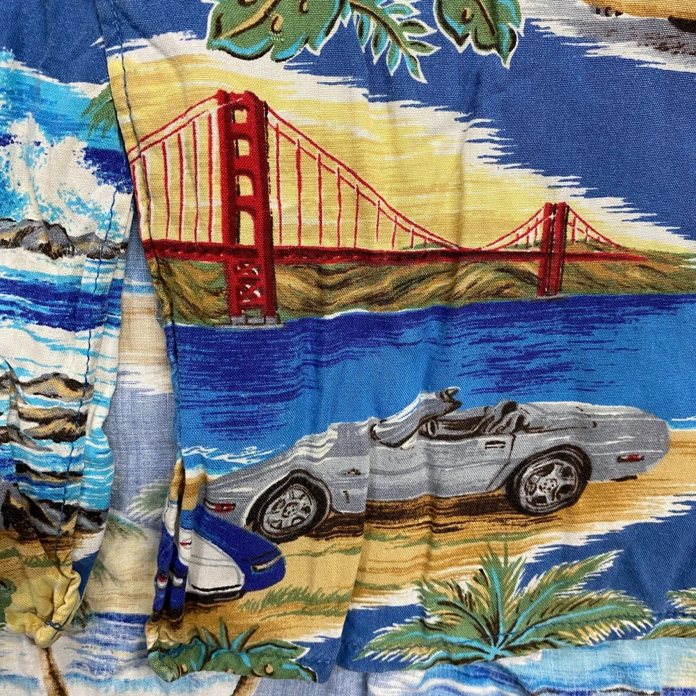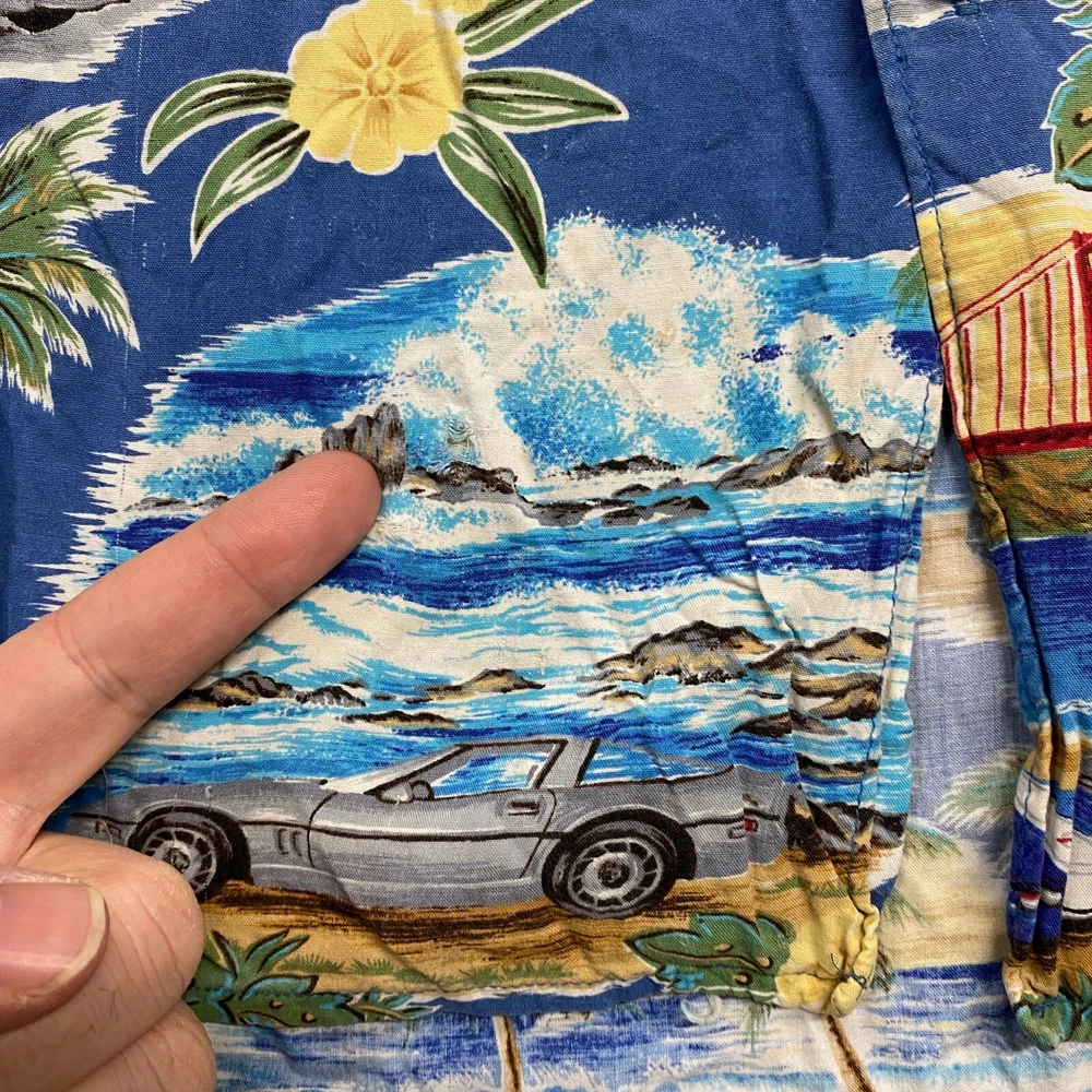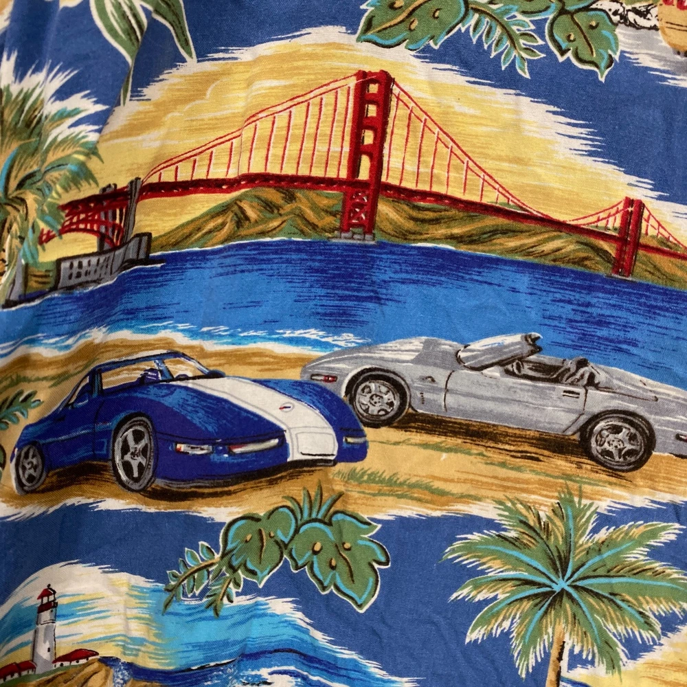 Reyn Spooner Hawaiian Shirt Mens XL Chevrolet Corvette Classic Cars Rayon Small holes on the front/bottom See photos for measurements