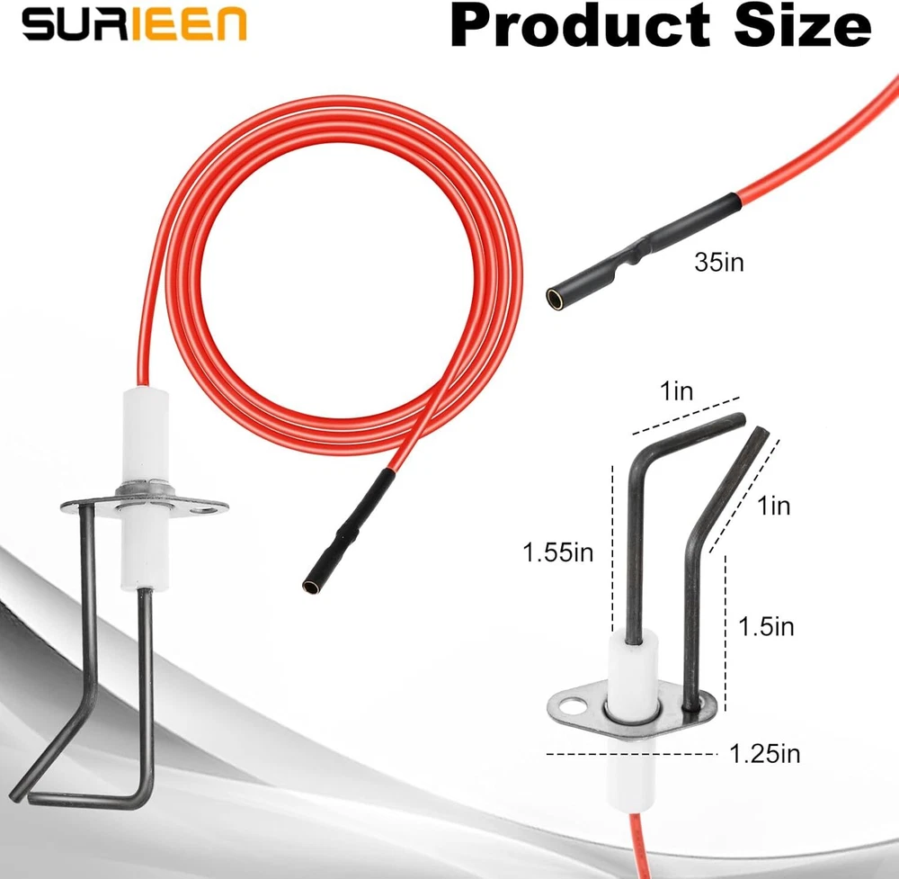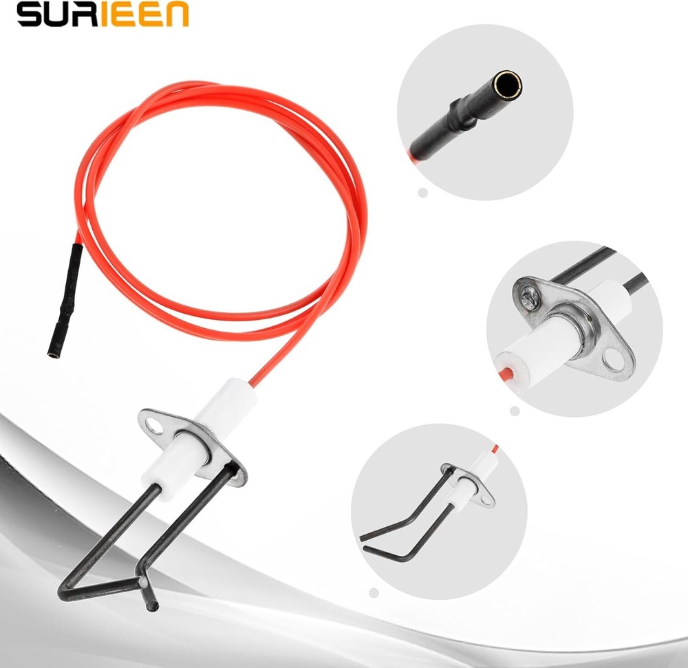 62-24164-01 Flame Sensor Igniter Sensing Rod, Compatible with Rheem Red Product Details Manufacturer: SURIEEN Part Number: 62-24164-01 Item Weight: 2.11 ounces Product Dimensions: 3.82 x 3.15 x 1.14 inches Item model number: 62-24164-01 Color: Red Mounting Type: Flange Mount Batteries Included?: No Batteries Required?: No Brand: SURIEEN Color: Red Mounting Type: Flange Mount Is Electric: Yes Manufacturer: SURIEEN MaterialStyle: CeramicIndoor Installation 【Premium Quality】This Furnace Burner Igniter is made of premium alloy material. This alloy is characterized by high electrical resistivity and good oxidation resistance. DIY Ignition Parts with Double Sparker and 33.5inch 480°F Resistance High Temperature Cable. 【Replace Part Number】Direct Spark Ignition Ignitors Replacement for model 62-24164-01 Flame Sensor Igniter Sensing Rod of Rheem Furnace Include two sets and replacement for Suburban 232258 2-Prong Electrode Assembly. It is high efficiency spark kit with two sparking for fireplace, fire pit , furnace etc. 【Wide Application】This can be universal kit if you can adjust the height of spark pin in right posistion. The two pin will increase the power during spark and higher efficiency igniting. Suitable for RV furnaces, water heaters, indoor and outdoor kitchens, cooktops, ranges and ovens etc. 【Easy Installation】The Direct Spark Ignitor is easy to use. Remember to shut off the power to your furnace (or any other appliance), then remove the broken Sensor and replace it with our new sensor. Turn the power back on, Check the Results. 【What You Get】The pacakge include 2pcs Flame Sensor Igniter with small rubber cables. If you have any questions, simply contact us to get a replacement or refund. We provide friendly 24/7 customer service.