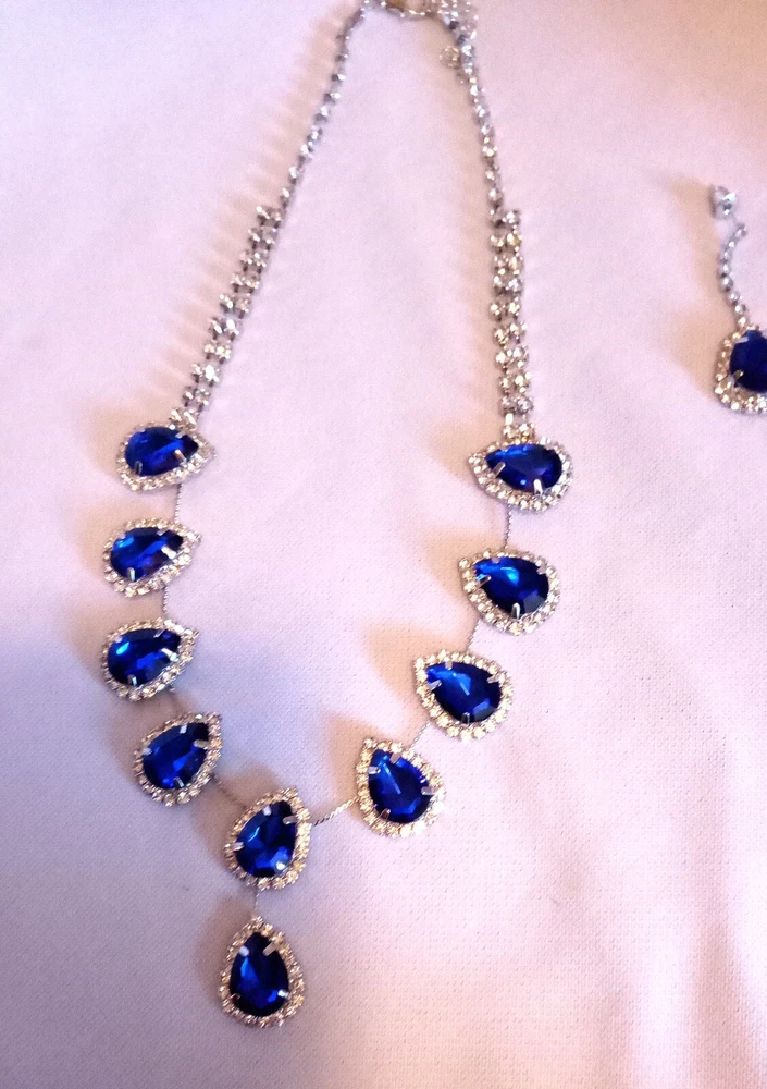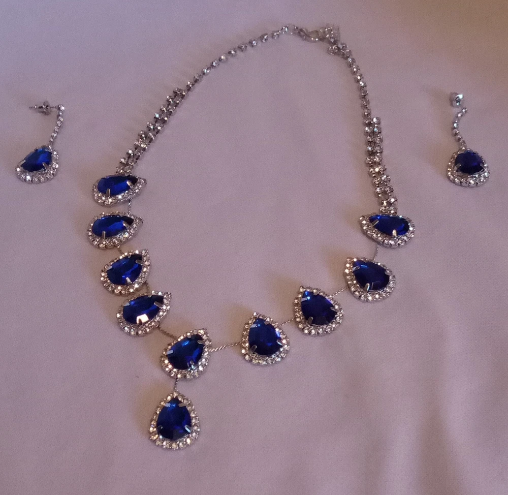 Women's Royal Blue Choker Necklace Earring Set Rhinestone 14" Silver Light Weight See Other Jewelry, Collectibles, Clothes, And Accessories inside This Store. Thank You For Shopping. Please Visit Again Soon.