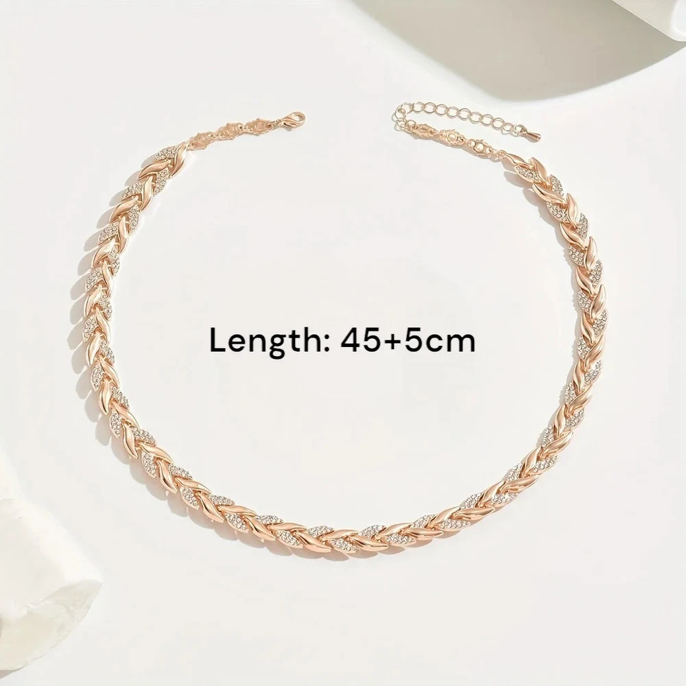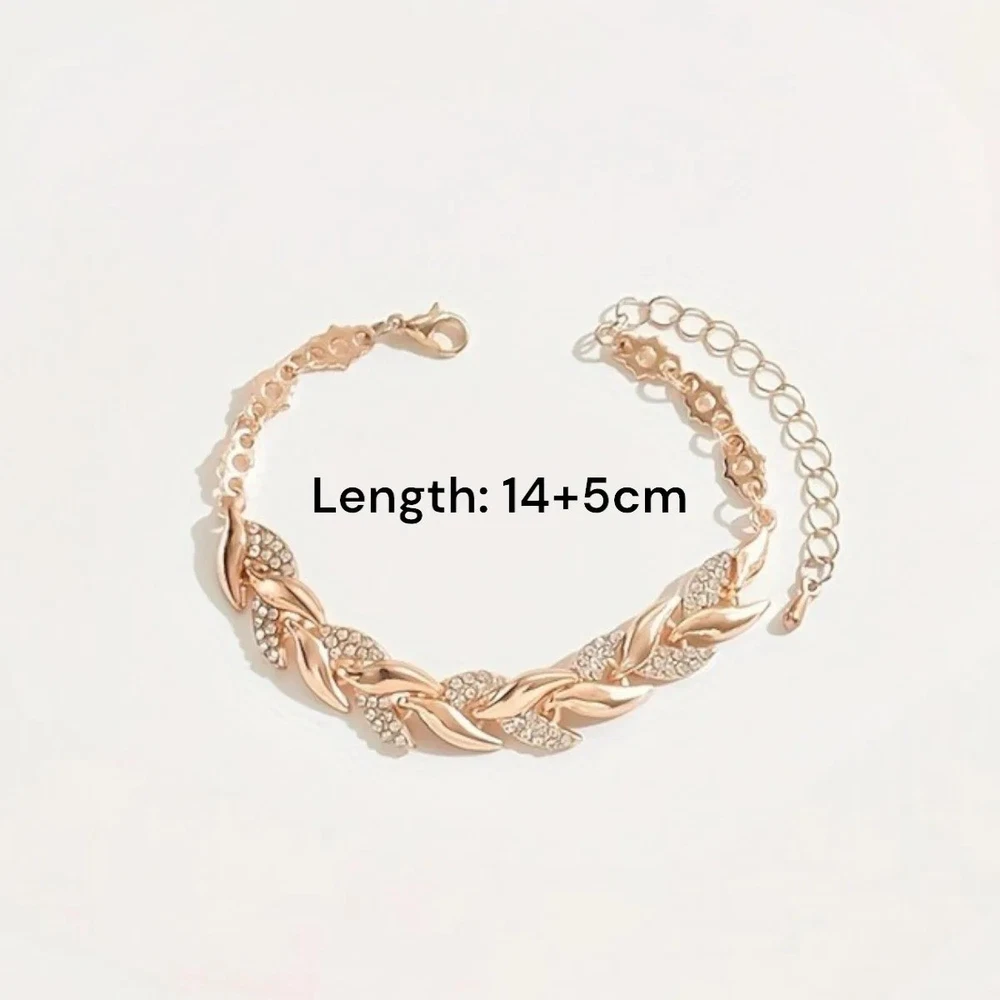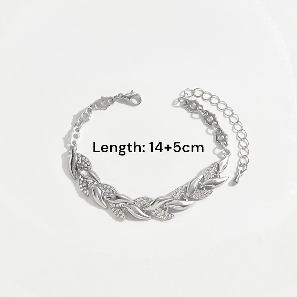 Rhinestone Pave Jewelry Gift Set – Leaf Link Necklace & Bracelet for Women Add elegance to any outfit with this stunning rhinestone pave jewelry set. Featuring a beautiful leaf-link design, this matching necklace and bracelet offer a sparkling, stylish look perfect for both everyday wear and special occasions. Features: Stylish Gift Set: Includes 1 leaf-link necklace and 1 matching bracelet. Rhinestone Pave Detailing: Adds shimmer and sophistication. Elegant Design: Perfect for parties, weddings, evenings out, or casual wear. Comfortable to Wear: Lightweight and easy to match with any outfit. Great Gift Idea: Ideal for birthdays, anniversaries, Valentine’s Day, Mother’s Day, or Christmas. Condition: Brand new. Suitable For: Women and ladies of all ages. Package Includes: 1 x Rhinestone Leaf Link Necklace 1 x Rhinestone Leaf Link Bracelet