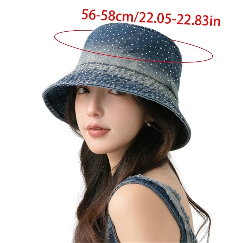 Features: Material: Denims, more soft and cool in summer. Bucket hat, suitable for most head sizes. Suitable for most people, you can wear in 4 season. Great gift for your family and your friend. Suitable for sports, outdoor, daily and party wear. Our hat can shade and decorate, also play good role in modifying your head, good hat whether you wear for yourself and give it to others as gifts. Specifications: Material: Denims+Rhinestones Hat Circumference: About.56-58cm/22.05-22.83in Color: 3 Option Package Includes: 1x Bucket Hat note: 1.Please allow 1-2cm errors due to manual measurement, note that you donot mind before you order. 2.Due to the differences between different monitors, the picture may not reflect the actual color of the item.