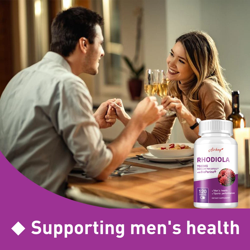 Effects: Energy & Endurance, Men's Health, Testosterone Booster Ingredients: Rhodiala Root Directions: Take 2 capsules once daily after a meal. Shipping: Ships within 48 hours on working days. Shelf life: 2 years Description: Relieve Stress and Boost Your Mood - Are you feeling brain fog, stressed, or exhausted? Rhodiola helps you fight the fog while leaving you relaxed and ready to take on your day. Whether you're having a busy day at the office, classroom, or home, Rhodiola can relax your mind while improving your focus, clarity, and mood. Boost Energy and Endurance - Looking for a clean boost of energy and mood? Our pure Rhodiola helps you stay focused and alert throughout the day so you can stay motivated, excel, and win the day. Rhodiola boosts immune support and defenses, stabilizing and maintaining your body and overall health to help you live a balanced, healthy life. Vegetarian & Non-GMO - Rhodiola is vegan, non-GMO, and gluten-free. Document