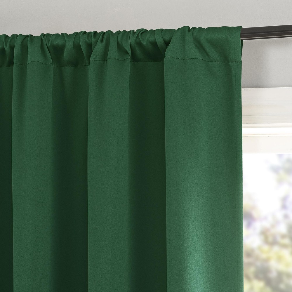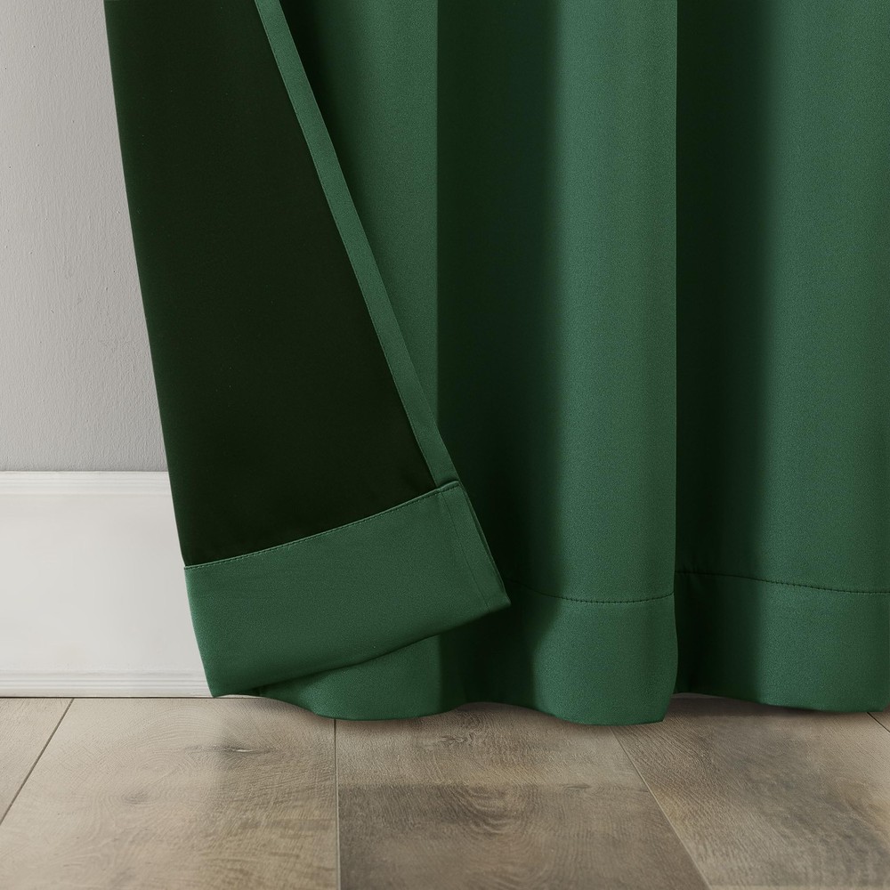 Rianna Theater Extreme 100% Blackout Rod Pocket Curtain Panels provide the ultimate in light blocking technology to keep out even the harshest of light while bringing an elegant urban sophistication to any room of your home. Extreme Blackout technology is laboratory tested to block out 100% of light, reduce outside noise by up to 45%, and decrease energy lost through your windows by up to 50%. Comfort is optimized with thermal properties that help keep summer heat and winter chill out of your home. Built-in rod pocket design allows for easy slide-through installation on curtain rods up to 1.5" in diameter. Hang in your entertainment room to eliminate screen glare and reduce distracting outside noise, or in your bedroom for enhanced privacy and a sounder, more uninterrupted sleep. Sold as individual panels measuring 40" width by 63" length in color malachite green. Measure carefully before selecting your desired size and quantity. Rod not included. Machine wash cold on gentle cycle. Use non-chlorine bleach when needed. Tumble dry on low heat, using a cool iron as needed. Extreme Blackout technology blocks out 100% of outside light Energy Efficient design reduces energy lost through your windows by up to 50% Thermal properties help keep summer heat and winter chill out of your home Noise reduction by up to 45% helps you get a sounder, more uninterrupted sleep Built-in rod pocket fits curtain rods up to 1.5" in diameter Panels sold individually. Measure carefully prior to purchase (Image features 2 panels)