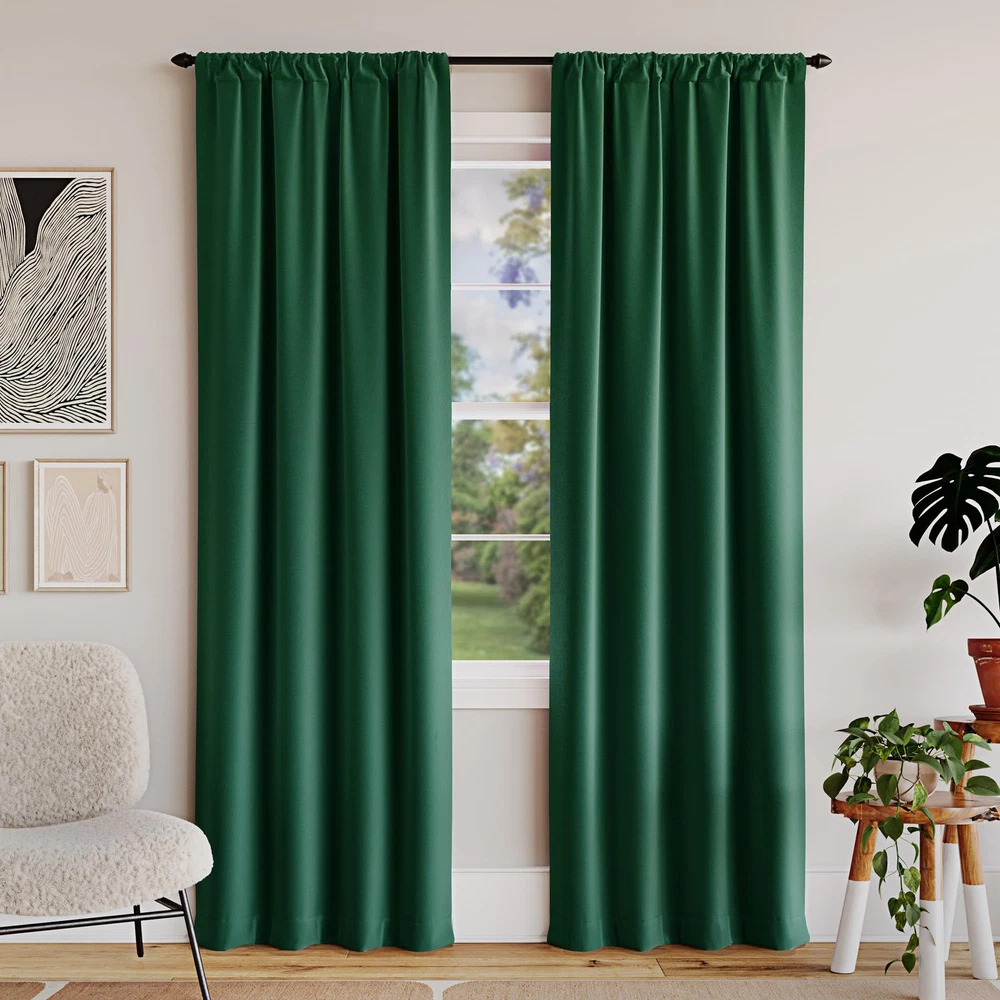 These curtains are a total game-changer for my bedroom! The blackout effect is incredible—absolutely no light sneaks in, making sleep so much better. They even help with noise and temperature, keeping the room quieter and more comfortable year-round. The fabric feels high-quality, and the rod pocket design makes them easy to hang. Perfect if you want darkness, peace, and energy savings all in one stylish package.