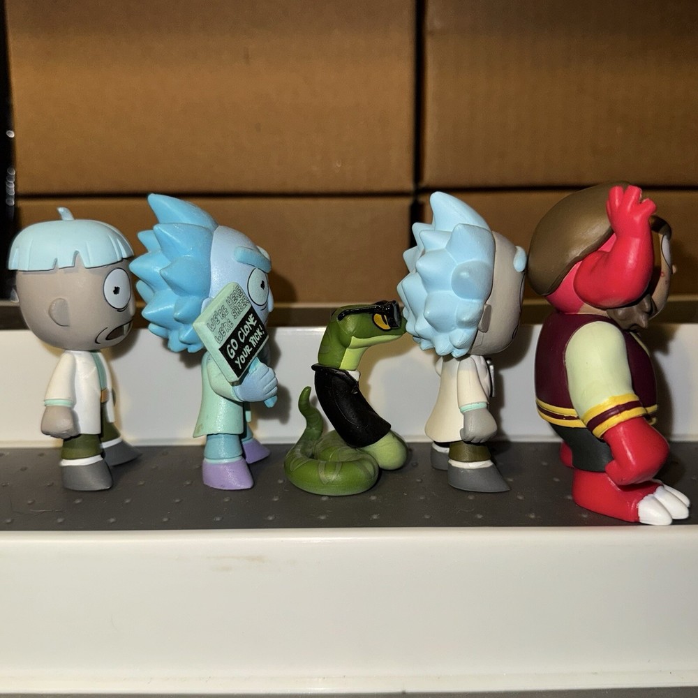 I can sell separately, message me for separate pricing This lot includes 11 Rick and Morty Funko Mystery Minis Included are: 1/6 Mr. PBH 1/6 Teddy Rick 1/12 Summer 1/12 Beth 1/12 Arthricia 1/12 Bird Person 1/24 Doofus Rick 1/24 Morty Jr. 1/12 Drunk Rick with Flask Target Exclusive 1/12 Glow Hologram Rick GameStop Exclusive 1/24 Asher Hess GameStop Exclusive Figures are in good condition, each will be individually bagged for protection. Figures may have minor imperfections such as scratches or blemishes Will ship with care If you have any questions please ask me! :)