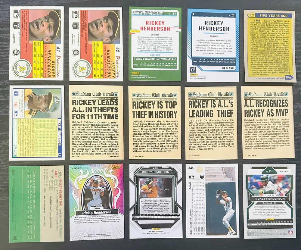 Rickey Henderson Collection 15 Cards: M/NM 1987-2023 Oakland Athletics HOF