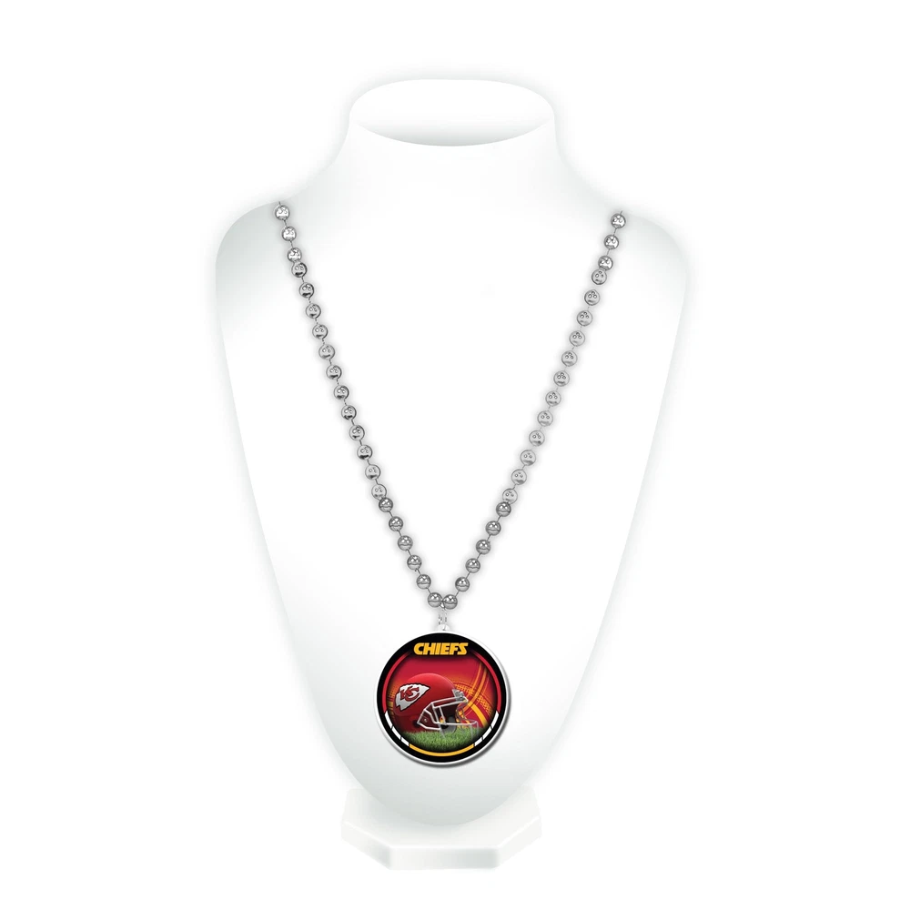 Description This team logo Mardi Gras style beads by Rico Industries is the perfect accessory for your next tailgate party! it measures 21-inches in length and the medallion measures 3-inches and features vibrant and lively two-toned team colored beads. It is made from durable plastic material and is decorated with bold and vibrant team colored graphics. Showcase your team spirit in style, perfect way to complete your game day look! makes for a great gift for party favors, stocking stuffers and more Mardi Gras style necklace measures 3-inches by 24-inches Raised plastic emblem with hand-painted colors and two-toned team colored beads Made from durable plastic material Perfect for any tailgate or house party to celebrate your favorite team Officially Licensed; Makes for a superb gift for the loyal sports fan No need to wait till Mardi Gras to have the classic bead style! Celebrate your favorite team during any game with this classic Team Logo Mardi Gras Style Beads by Rico Industries! The Sports Beads features two team colors along with a heavy duty, hand-painted, raised medallion shaped like your team's logo. The medallion is approximately 3 inches, and the necklace is 24 inches in length.