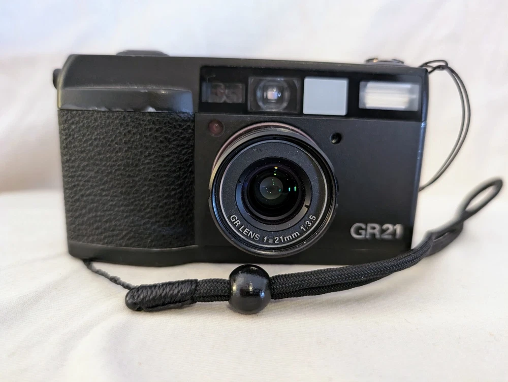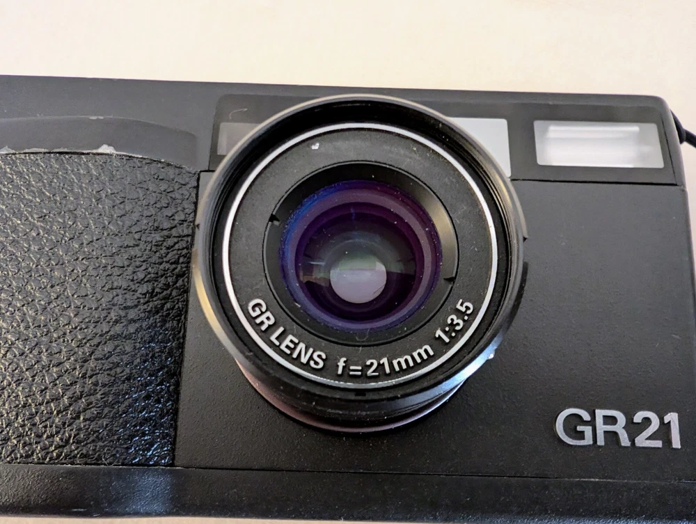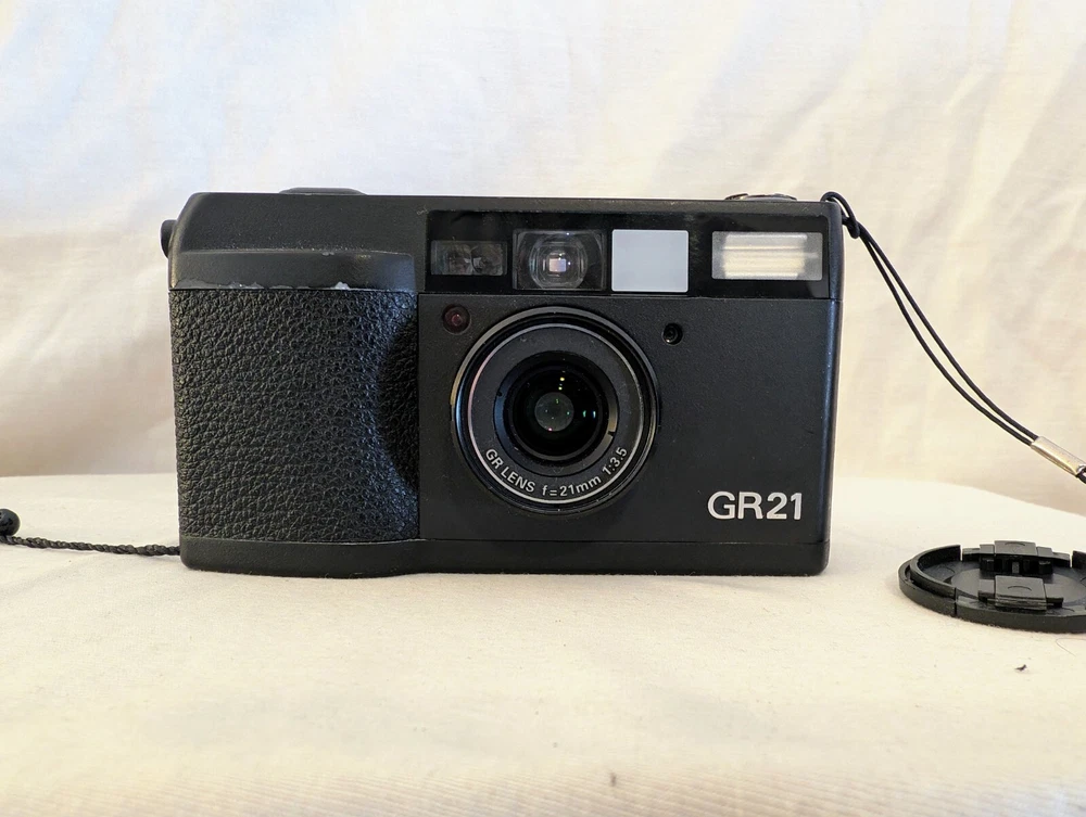 I'm paring down the camera collection and haven't been using the GR21 enough to keep it on the shelf. It was recently tested with a roll of film and all functions are working. The LCD is fine. The camera shows normal wear and the condition can be seen from the pictures. Let me know of any questions.