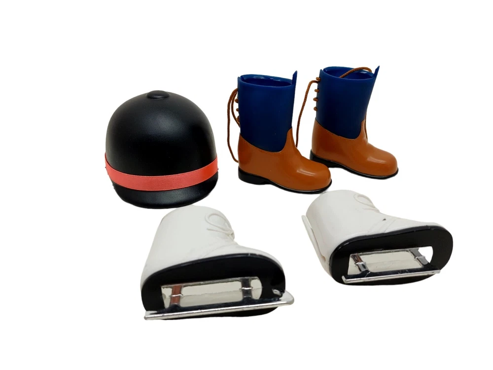 Have some marks, play wear. Riding Equestrian Helmet Battat Blue Brown Boots & Funrise Ice Skates 18” Doll.