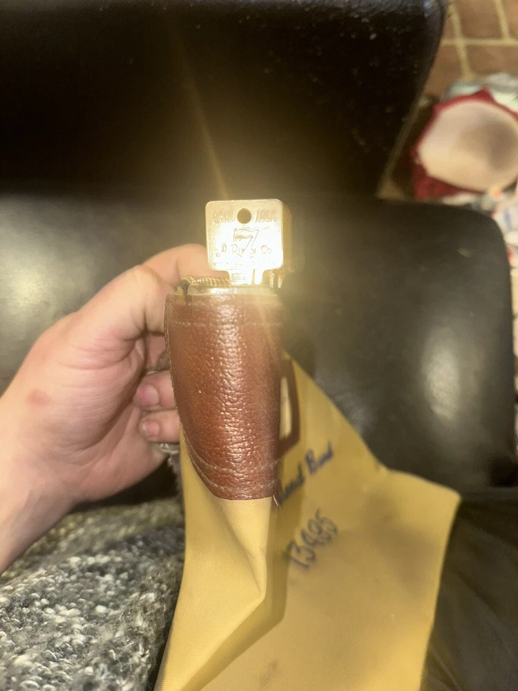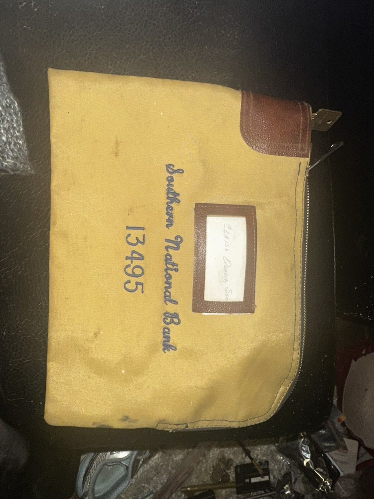 This vintage bank money bag from first national Bank features a unique Arcolock 7 design and is branded with the first National Bank and business card and two extra keys. It offers three different options for collectors or enthusiasts looking to add to their collection of bank checks and drafts. Whether you're a fan of unique paper collectibles or simply interested in the history of banking, this item is sure to pique your interest.