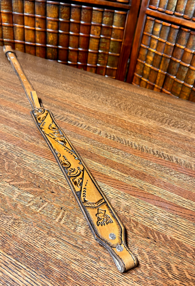 Rifle Sling Hand Tooled (Prison Made) Leather Western Design w/ Deer, Adjustable