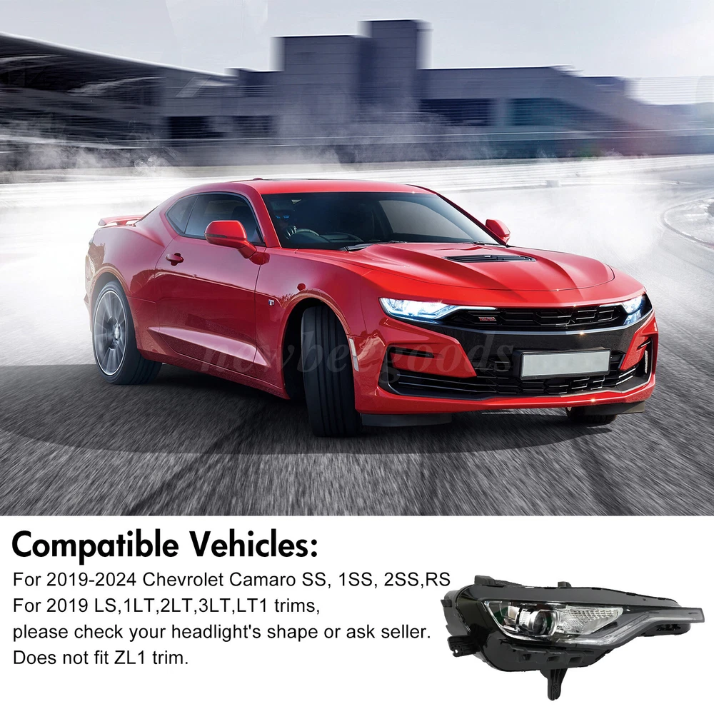 Welcome to NewBeeGoods feedback | contact us Location United States Hours Open 24/7 Support Feel free to Contact us Electronics Motors Supplies Home & Garden Pet Supplies Business & Industrial Newbeegoods USD 355.99 Right Passenger Headlight For 2019-2024 Chevrolet Chevy Camaro SS RS Head Lamp Specification: Type: Headlight Assembly ( includes bulbs and wiring ) OE Number: 84756147 GM2502494 Lighting Type: LED Housing Color: Black Lens Color: Clear Condition: 100% Brand New Fitment Type: Direct Replacement Position on Vehicle: Front, Right Side Features: 【100% Brand New, Premium Quality】 This headlight is designed with a focus on top-tier quality. Completely new with no refurbished parts, every step from material selection to manufacturing is meticulously crafted to meet the highest standards, delivering an unparalleled driving experience. 【Pierces the Darkness, Lights the Way】 Whether driving at night or in bad weather, this headlight provides powerful illumination and excellent visibility, cutting through darkness and fog. It’s like a sharp pair of eyes guiding you, ensuring a safer driving experience in challenging conditions. 【Sleek Design, Personalized Style】 In addition to its outstanding performance, this headlight features a clean, elegant design that enhances the look of your vehicle. Its aesthetic appeal blends effortlessly with various car models, helping your car stand out on the road. 【Easy Installation, Instant Upgrade】 No need for complicated tools or steps—this headlight is designed for easy installation. The no-drill, no-modification design ensures a seamless replacement process, so you can immediately enjoy brighter lights and an upgraded driving experience without any extra effort or cost. Compatible Vehicles: For 2019-2024 Chevrolet Camaro SS, 1SS, 2SS,RS For 2019 Chevrolet Camaro LS,1LT,2LT,3LT,LT1 trims, please check your headlight's shape or ask seller. Does not fit ZL1 trim . Package Contents: 1×Right Headlight Note: 1.Please confirm fitment with your vehicle before purchasing. 2.Ensure secure installation before driving for optimal safety. 3.Due to display and lighting differences, the actual product may slightly vary from the images. 4.Installation instructions are not included; professional installation is highly recommended. Shipping Returns Payment We only support transactions through the eBay, not other channels. We support all payment methods recommended by ebay. We promise to protect all the private information of our customers. It will take about 1-5 working days to reach you within USA. If your item develops a fault due to a manufacturing defect please contact us and we guarantee a satisfactory solution. If you return your item for any other reason within 30 days from receipt we will refund you. 100% Feedback - we're proud of our 100% record and aim to keep it that way! Please contact us if you're not entirely happy with your order and we'll try to rectify it ASAP! Our aim is to ship within 24 hours. All of our products are shipped locally from USA, with warehouses in PA and CA. But most of our inventory is in CA, so 90% of our products are packaged and delivered to you at our CA warehouse. We recommend using economy and standard shipping for shipping, such as FedEx and USPS. Due to various traffic and policy limited, express shipping sometimes does not deliver in time. Normaly, you will take the item within 1-5 days after you place it. other products Consumer Electronics BGPS, Video, Camera, Radio, and other Smart Electronics Motors Supplies LED Headlighs, Fog Lights, Seat Belt, Jump Starter Home & Garden Home Storage, Cleaning, Lighting, and Other Tools Pet Supplies Training, Grooming, Living, Eating for Pet About Newbeegoods Newbeegoods was born in Nov 11, 2022. We have been deeply involved in the auto and motorcycle parts industry for decades, and since 2020 we have been creating our e-commerce company, as well as expanding our business into other industries. Newbeegoods is already one of our 24 e-commerce subsidiaries and we trade in European countries including the USA, UK and Germany, and have established our independent warehouses in each country of sale. We have the confidence and ability to provide consumers with 100% product quality assurance and after-sales service. quick links Listings About Us Feedback Contact Us