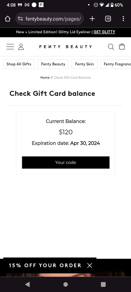 Expiration Year: 2024 Value (Dollars): 120 Type: E-gift Card Brand: Fenty Beauty Valid Locations: California-Northern Expiration Month: April
