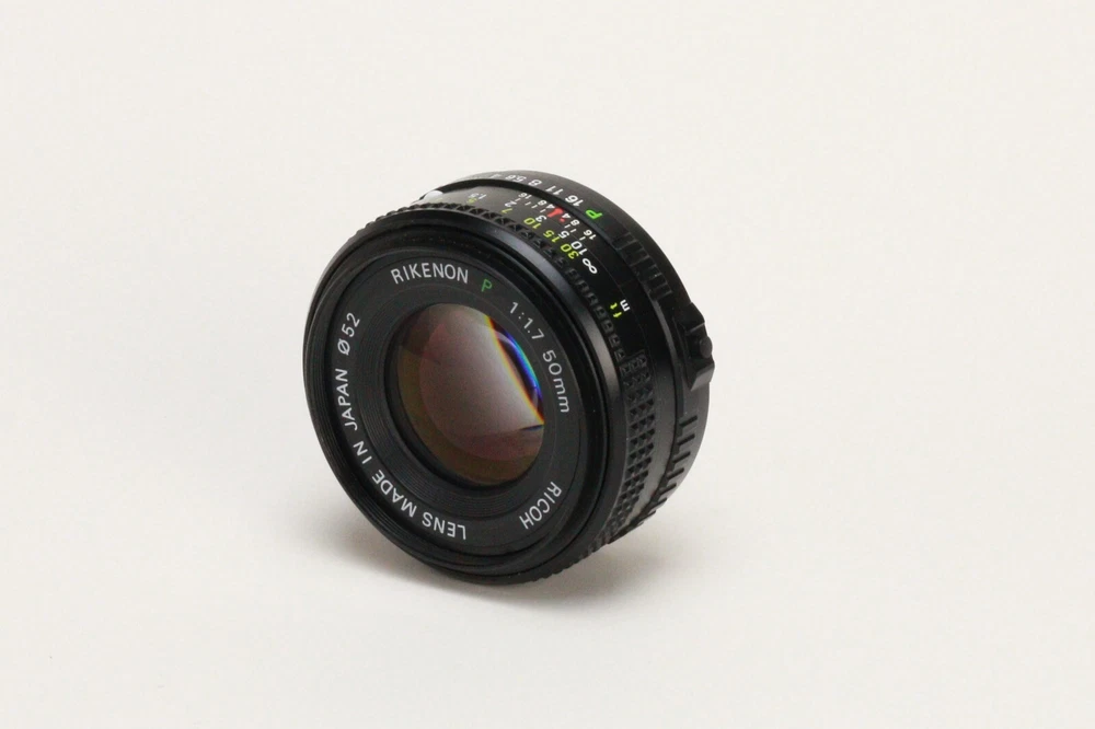 Rikenon P 50mm f/1.7 Lens - Classic Manual Focus Prime Lens for Sharp, Vibrant S Description: The Rikenon P 50mm f/1.7 is a versatile manual focus prime lens that delivers sharp, vibrant images with a classic feel. Featuring a fast f/1.7 aperture, it excels in low light conditions and creates beautiful background blur (bokeh), making it perfect for portraits, street photography, or any creative project. This lens is in excellent condition , with no haze, scratches, or fungus, ensuring top-notch image quality. The lens comes with its original front cap , keeping it well-protected when not in use. Compatible with cameras using the Pentax K-mount , this lens is ideal for those looking to add vintage charm to their gear collection. Whether you're capturing daily life or experimenting with artistic effects, the Rikenon P 50mm f/1.7 is a reliable and affordable choice for any photographer.