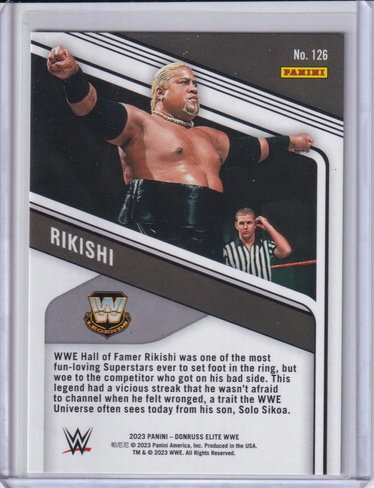 Year Manufactured:2023Card Number:126Card Name:Rikishi Aspirations SwirlPlayer/Athlete:RikishiSeason:2023Parallel/Variety:Aspirations SwirlTeam:LegendsAutographed:NoSport:WrestlingMaterial:Card StockManufacturer:PaniniCard Size:StandardLeague:WWELanguage:EnglishSet:2023 Panini Donruss Elite WWEOriginal/Licensed Reprint:OriginalFeatures:Base Set, Parallel/Variety, Serial Numbered, Short PrintType:Sports Trading CardVintage:NoCountry/Region of Manufacture:United States