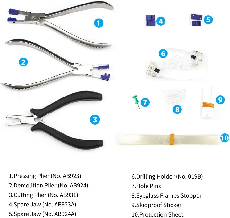 Store New Arrivals Add to Favorite View Feedback Contact Rimless Glasses Frame Silhouettes Eyeglass Optical Kit, Glasses Frame Plier Eyeglass Plier Professional Eyeglasses Plier Set Rimless Disassembly Glasses Frames Optical Tools Kit Description Item model number Cimenn-GZP-66121155 Part Number Cimenn-GZP-66121155 Batteries Required? No Color Stainless Steel,blue Material Stainless Steel Country of Origin China Grip Type Ergonomic Specific Uses For Product Professional Item Weight 570 Grams Handle Material Stainless,Plastic,Metal,Steel Batteries Included? No Package Dimensions 7.48 x 5.91 x 1.57 inches lasting AND PRACTICAL: Made of high quality stainless steel material, and the tip of plier equiped with plastic cover, so that the lens of glasses will not be scrab, help you avoid unnecessary losses, please rest assured that use our products HAND TOOLS: there are three different type of pliers in our glasses plier Kit, the cutting pliers(only for plastic plug not metal), demolition tongs, and installation pliers can help you repair rimless glasses quickly and perfectly APPLY: Professional eyeglasses pliers for glasses repair, comes with different types accessories, can help you save more time, if you are glasses repairer or people who often need glasses, this may be a good assitant for you EXQUISITE WORKMANSHIP: Outdoor stainless steel multi tool plier portable pocket mini camping Kit, the handle of these glasses repair pliers are designed with spring, it will automatically after use, Non-slip design on the edges, can provide more comfortable experience for you CONVENIENT TO CARRY: a eyeglasses repair tool set for you,packing with nice blue plastic case, it is light weight about 570 g/20.1 oz, you can take it on hand, or put into your bag and the car, very easy to carry Features: 1. Made of high grade material, which is lasting and practical. 2. Professional tools kit for rimless frame. 3. Quick and easy to repair glasses frames perfectly. 4. Packing with nice blue plastic case, convenient to carry. 5. A eyeglasses repair tool set for you. Specification: Condition: Brand New Type: Eyeglass Pliers Set Plier Material: Stainless Steel Color: As Pictures Show Package Weight: Approx. 550g Package Included: 1 x Pressing Plier (No. AB923) 1 x Pressing Plier (No. AB924) 1 x Cutting Plier (No. AB931) 2 x Spare Jaw (No. AB923A) 2 x Spare Jaw (No. AB924A) 2 x Drilling Holder (No. 019B) 1 x Hole Pins 4 x Eyeglass Frames Stopper 10 x Skidproof Sticker (anti-skid and avoid scratching) 10 x Sheet (prevent the drilling hole from being broken) ABOUT US We offer the best prices around on high quality products. Our E-store includes media such as books, movies, music and games while offering electronics, toys, sporting apparel, clothing, tools, general home, garden items and more. SHIPPING We are always working hard to ensure your package arrives as soon as possible. Please understand that some factors like weather, high postal traffic, and the performance of shipping companies are outside of our control. We offer free shipping to the lower 48 states and ship within 2 business days of payment, usually sooner. We do not accept P.O. Boxes. Please provide a physical address. For shipping outside of the continental USA, we only use eBay's Global Shipping Program.The item is shipped to KY and then sent to the rest of the world. International customers are responsible for all duties and taxes. Continue to check out in order to calculate costs for shipping the item to your country. Messages regarding eBay's Global Shipping Program MUST be directed at eBay EXCLUSIVELY. RETURNS We offer a 30-Day Return Policy on items which you are not completely satisfied with. You have the option for a full-refund or an exchange of the item. No returns are available on items shipped outside of the USA. PAYMENT We accept PayPal. CONTACT US This page content is yet to come Please ad us to your favorite seller and visit again later Thank You CUSTOMER SATISFACTION We try our very best to make sure every customer is completely satisfied. If there's a problem, message us! We're happy to help. WE ACCEPT Copyright © 2021 AutoDS. | All Rights Reserved