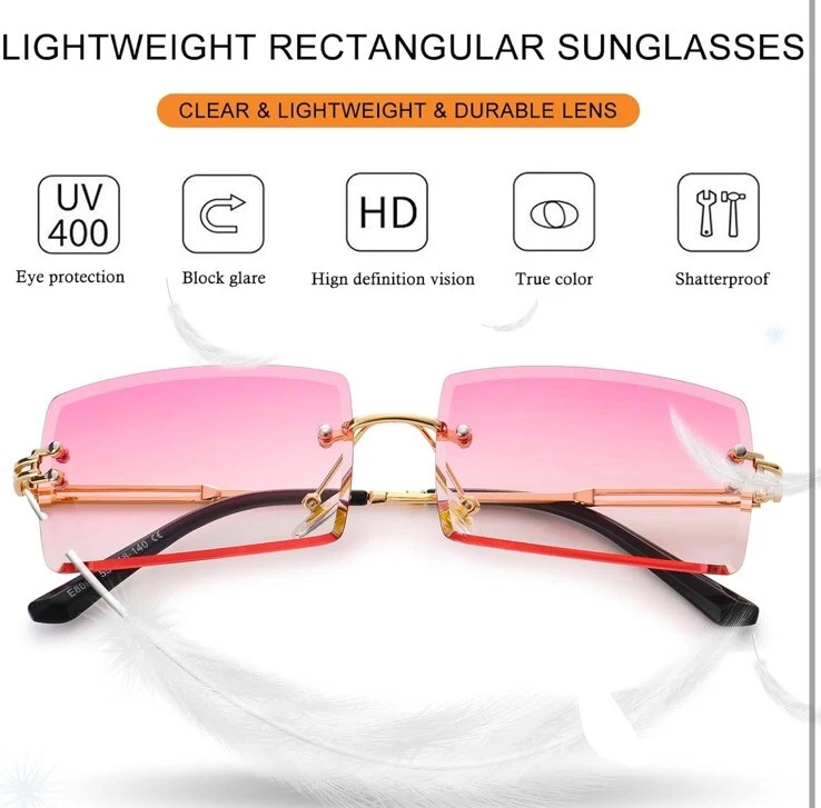 Rimless Rectangle Sunglasses Women Men Trendy Square Y2K Glasses Retro Frameless Eyewear Gradient Lens