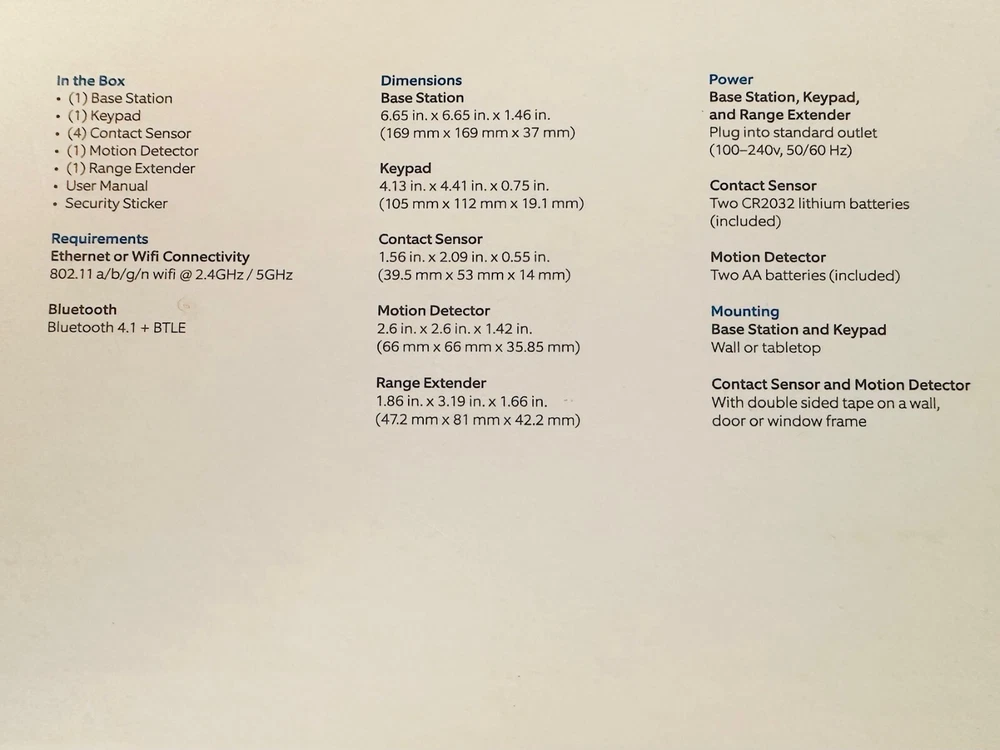 Keep an eye on your home while you're away with the Ring 8-Piece Alarm Home Security System. Receive an alert to your phone whenever a door or window is opened or motion is detected in your home while the system is armed, and utilize the 104-decibel siren to deter possible intruders. 104-decibel siren alerts you to any movement when the system is armed. Receive notifications to your phone or tablet when windows and doors are opened or motion is detected within your home. Customizable design can be expanded to fit any house or apartment. Panic Mode allows you to dispatch emergency services to your home from your keypad. 24-hour backup battery power. Utilize the app to control your entire home security system. Compatible with any iOS or Android device. Includes 1 base station, 1 keypad, 4 contact sensors, 1 motion detector and 1 range extender. Ring Alarm and all Ring Alarm accessories require a subscription for digital notifications, in-app features, digital arming/disarming, and integration with other Ring, Echo, and third party products. Subscription sold separately. Terms and conditions apply. Optional 24/7 professional monitoring with a Ring Protect subscription (sold separately). Connects to trusted third-party devices that are certified as "Works with Ring" Save up to $100 per year on home insurance with a professionally monitored Ring Alarm. (Actual savings vary depending on insurance carrier and policy). BONUS 1 Extra Motion Detector 1 Extra Contact Sensor 1 Ring Doorbell Wired Specs Item # 9714102 Manufacturer # 4K18SZ-0EN0 Model 8-Piece Alarm Home Security System Number Of Batteries 12 (Not included) Remote Control Included No Voltage 6 V Warranty None Width 5 in. Wireless Yes Alarm Type Security Battery Backup Yes Battery Size AA; CR-2032 Depth 9 in. Height 8 in. Quantity 8 Brand Name Ring Manufacturer RING