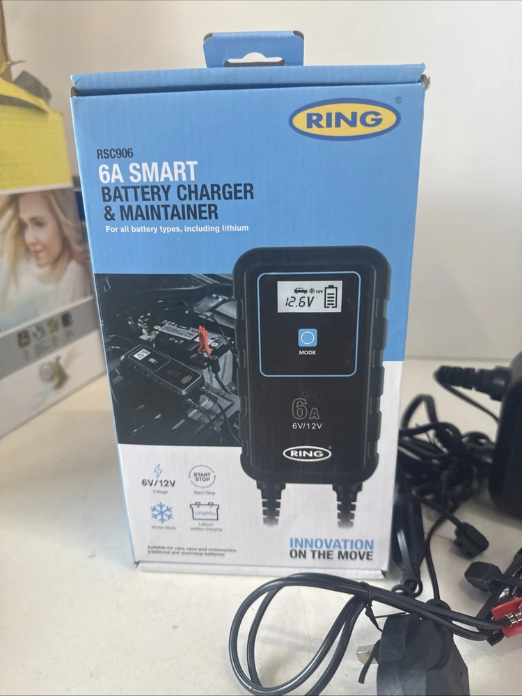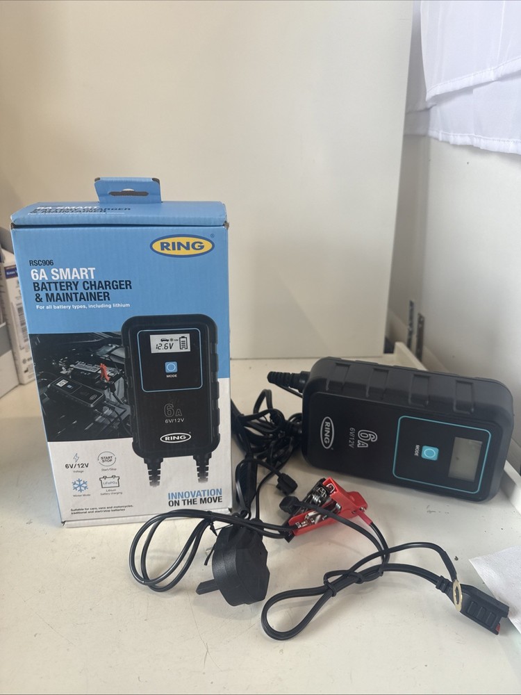 The Ring Automotive SMARTCHARGE 6 is a 6A Smart Car Battery Charger designed for both 6V and 12V batteries. This product, with the model number RSC906, is specifically manufactured for automotive use, catering to car owners who require a reliable and efficient charging solution. The sleek black design adds a modern touch to any vehicle, while the compact dimensions make it easy to transport and store. With its smart technology and high-quality construction from the trusted brand Ring, this battery charger is a practical and essential accessory for any car maintenance routine.