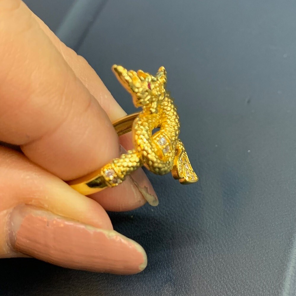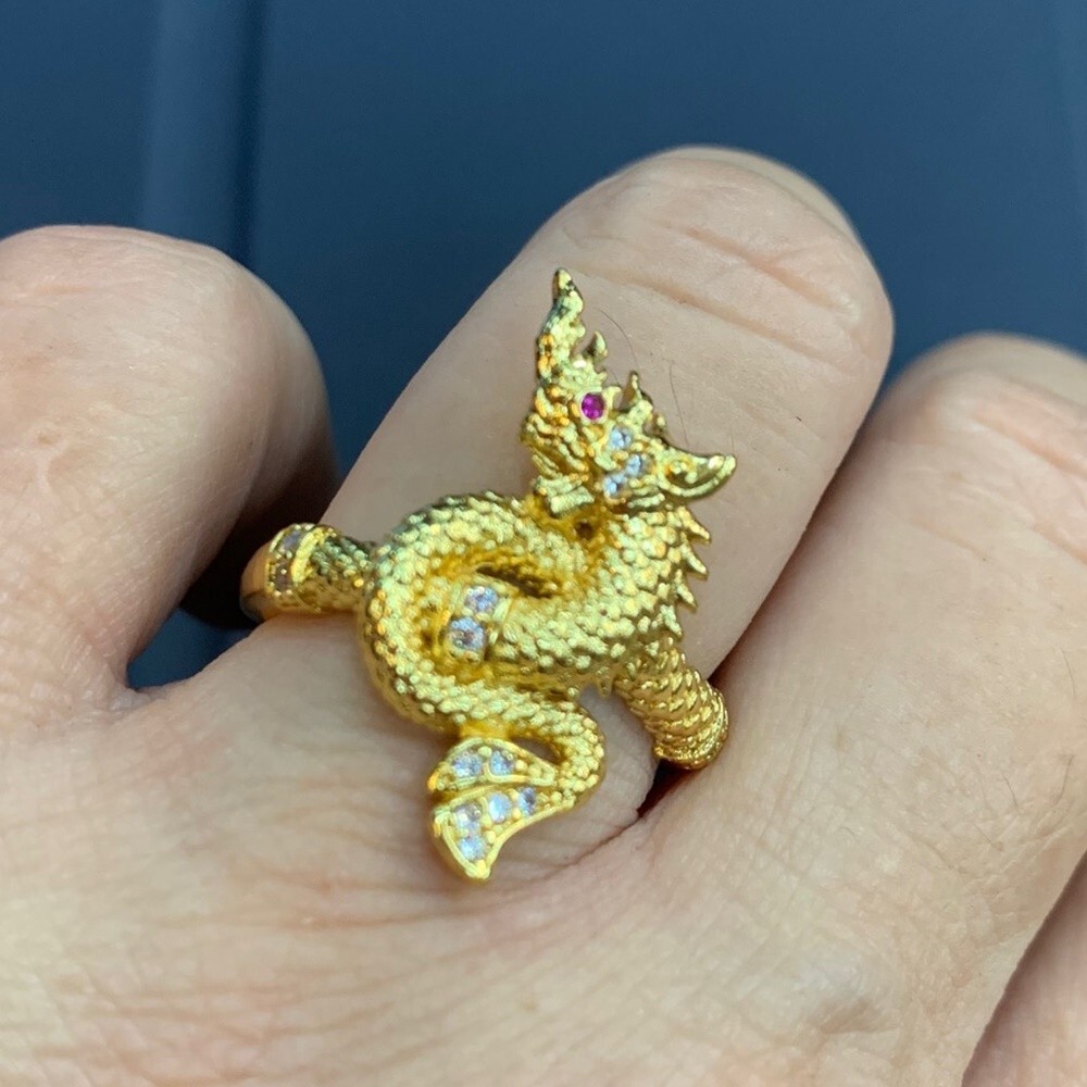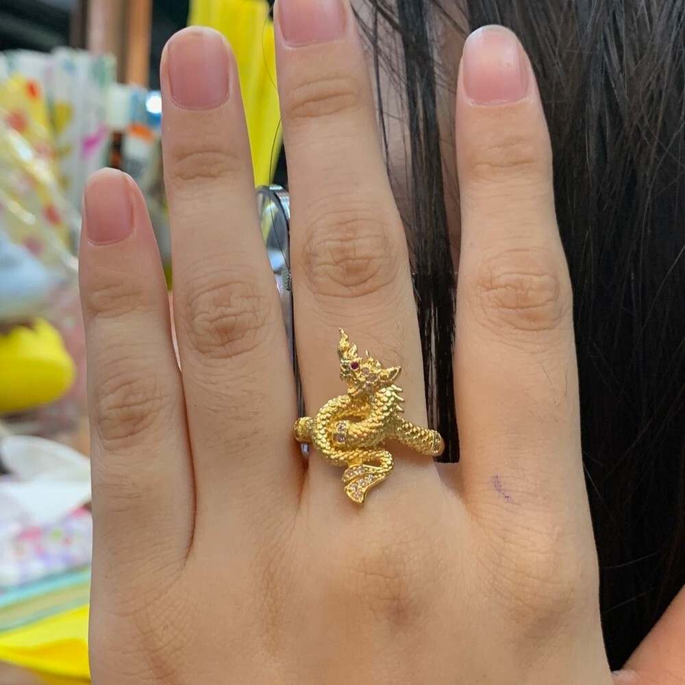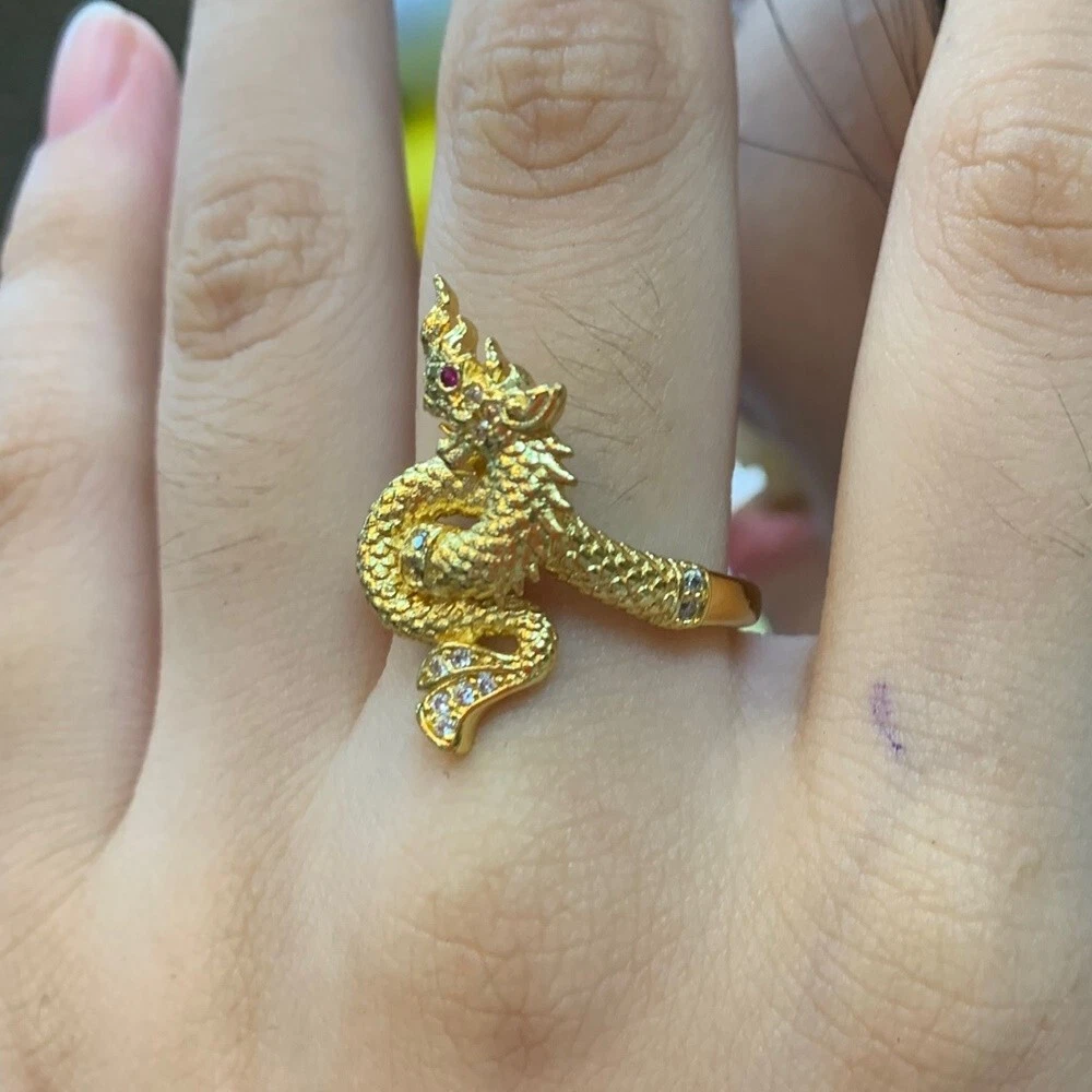 Ring Naga Dragon Gems Gold Serpent Thai Amulet Powerful Lucky Charming new Thai amulet naga Quantity ; 1 pc Naga is very powerful. There is a real person in Buddhism protecting the Buddha. The power of worshiping the serpent attracts wealth. Because the Naga is a treasure trove of gold and silver, getting rich quickly. Naga Lord of wealth. If you remember. Always searching for magic. Natives can turn crises into opportunities. Change bad into good Change your bad fortune into something magical. Because the Naga is always above others. So lift yourself up to lift us above our obstacles to eliminate evil. Escaping in leaps and bounds The crested snake is a symbol of greatness and abundance. The power and symbolism of the water god Many people can't help but ask about fortune. Will worshiping the Naga bring luck or not? In fact, this depends on the karma and agenda of each person as well. As for the Naga, he is the one who has access to wealth in the ground and wealth in the water. symbol of abundance Therefore, they are excellent in fortune and help. You can help with many things. You are kind. He loves all his children and grandchildren. But I want us to intend to practice Dhamma. As every Naga descendant should do. I will remember you. You will definitely protect us, your children.