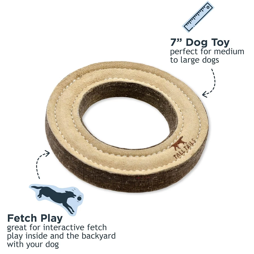 7" leather dog fetch toy Made with vegetable-tanned leather and reinforced layers of natural wool-felt stitched together Perfect for a game of fetch, tug-of-war, and other interactive play Ideal for medium and large dogs who love to retrieve and tug NOT a chew toy — please supervise during playtime and remove if toy becomes a choking hazard Spot clean recommended Product Description