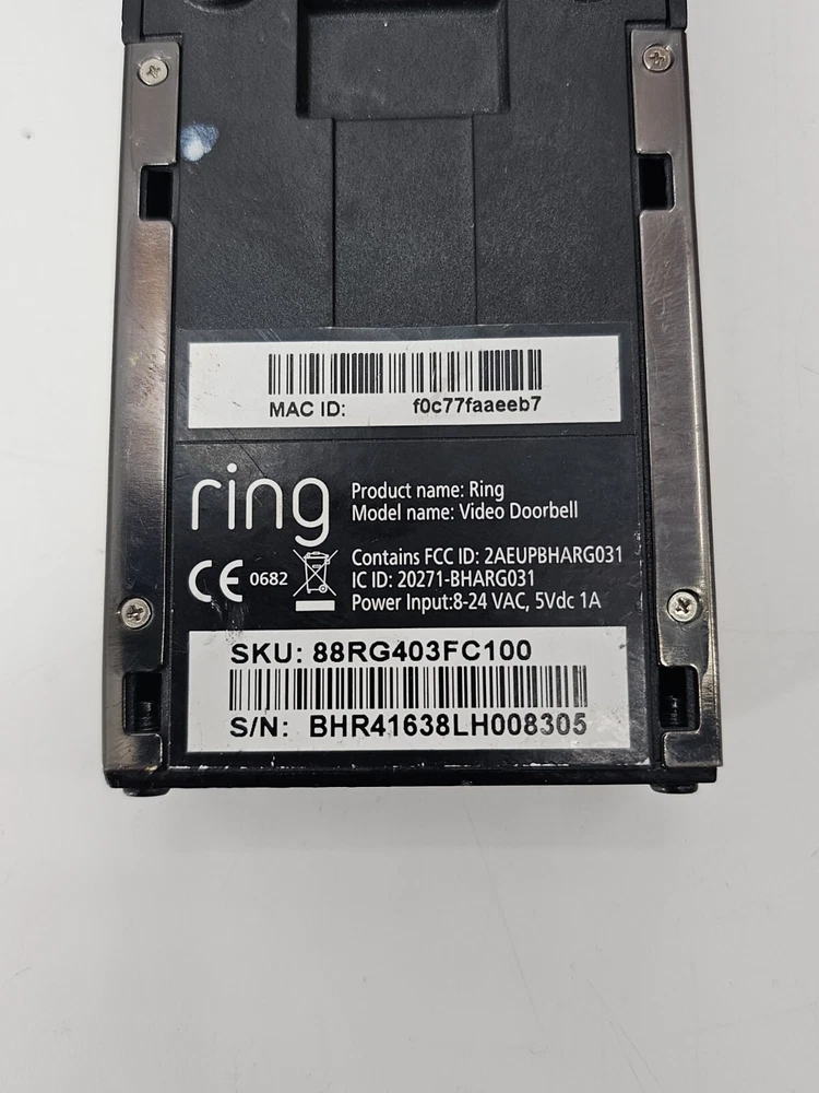 Brand: Ring Item Width: 1.1 in Suitable For: Home Connectivity: Wireless Style: Modern Battery Included: Yes Shape: Rectangle Power Source: Wi-Fi Color: Silver Type: Video Doorbell Model: Ring Doorbell Item Length: 2.4 in Material: Bronze Button Shape: Round Personalize: No