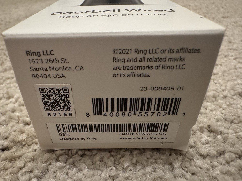 Button Shape: Round Power Source: Battery, Wi-Fi Type: Door Chime Features: Lighted, Waterproof, Wi-Fi Connectivity Country/Region of Manufacture: United States Model: 8VRASZ-VEN0 Color: Black Item Weight: 0.5 lbs MPN: RING 8VRASZ-VEN0 VIDEO DOOR CHIME Shape: Designer Suitable For: Home Button Material: Plastic Material: Aluminum, Bronze, Plastic, Stainless Steel Finish: Matte Manufacturer Warranty: 1 Year Brand: Ring Voltage: 5 V Style: Traditional Number of Batteries: 1 Item Length: 0.5 in Year Manufactured: 2020 Personalize: No Battery Included: No Item Width: 2.5 in Connectivity: Wired