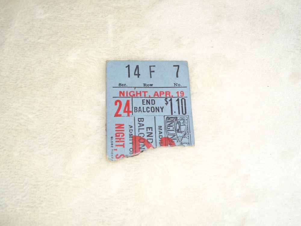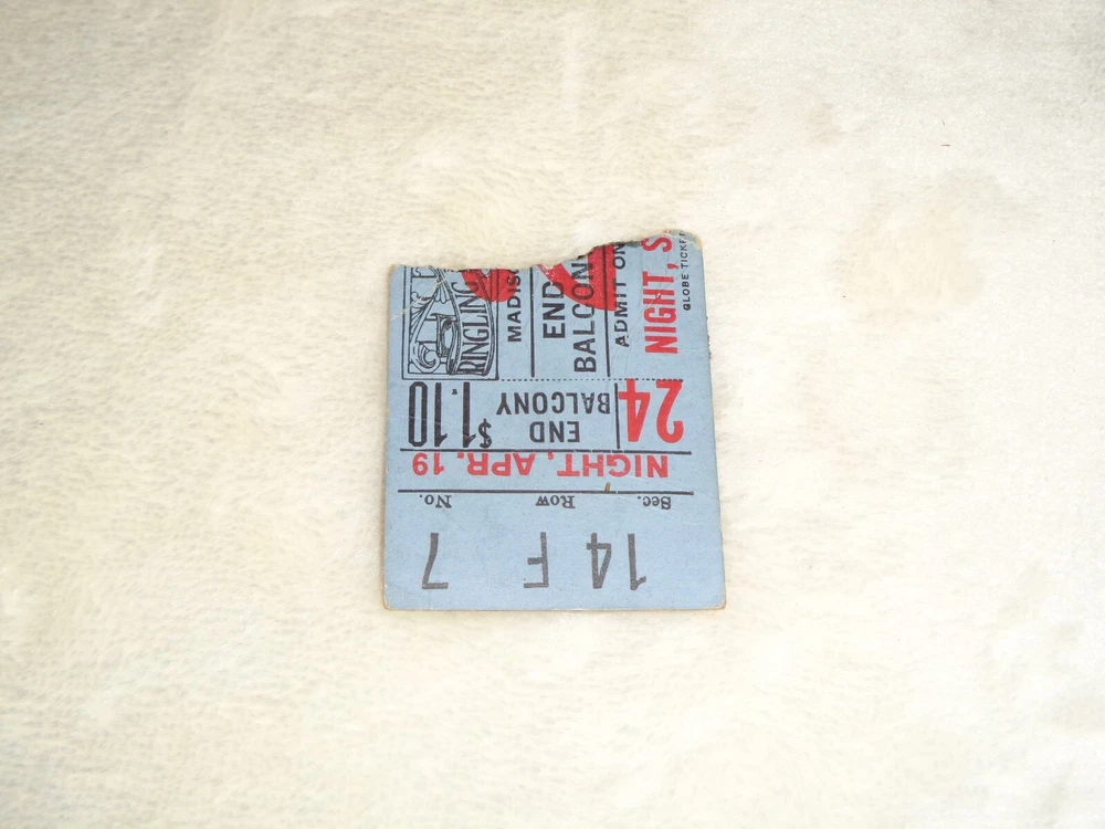 Ringling Brothers Barnum & Bailey Circus Madison Square Garden 1930s Rare Ticket Measures approximately 1 1/2" x 1 3/4". Ticket has been torn along the right side. Right edge is uneven. There is paper and glue residue on the reverse side, as this was removed from an old album or scrapbook. Item has creasing, discoloration and marks from age and storage. Please see photos for more information on condition and ask any questions you may have.