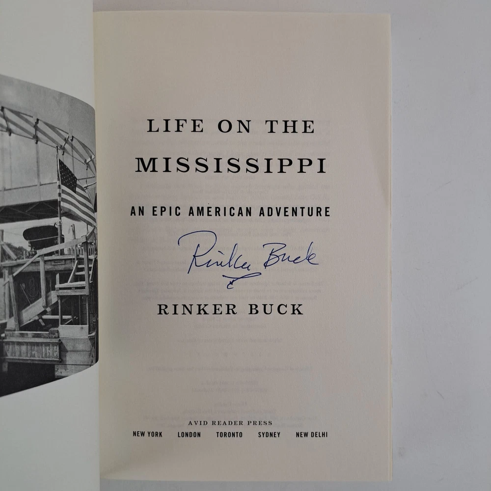 LIFE ON THE MISSISSIPPI: AN EPIC AMERICAN ADVENTURE [Signed] Author: Buck, Rinker Title: LIFE ON THE MISSISSIPPI: AN EPIC AMERICAN ADVENTURE [Signed] Publication: New York, New York: Avid Reader Press, 2022 Edition: First Edition, First Printing Description: Octavo, 397 pages. In Very Good condition with Very Good condition dust jacket. Spine is white with red lettering. Dust jacket protected by mylar covering, price uncut: "$32.50" on front flap, and has mild shelving wear along spine head and tail. Boards have mild bumping to fore corners and moderate shelving wear along spine head, tail, and joints. Contains receipt of original purchase. Signed flat on title page by Rinker Buck. Shelved in hallway. Seller ID: 1389772 Subject: Travel, Exploration, & Geography, US History Welcome to the eBay store of Second Story Books! DC's Oldest Rare and Used Bookstore, Second Story Books operates two open shops in the Washington D.C. metropolitan area. We have an extensive internet presence and provide accredited appraisals member ASA. This listing was created by Bibliopolis.