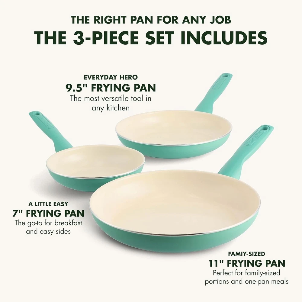 Rio Healthy Ceramic Nonstick Frying Pan Set - 3 Durable Pans (7", 9.5", 11") ‹ › ‹ › ‹ › ‹ › ‹ › ‹ › ‹ › ‹ › ‹ › ‹ › ‹ › Rio Healthy Ceramic Nonstick Frying Pan Set Revitalize your cooking experience with our vibrant Rio Healthy Ceramic Nonstick Frying Pan Set. This elegant collection includes three essential sizes—7", 9.5", and 11"—designed to elevate your culinary creations from breakfast to dinner. Features: Thermolon Healthy Ceramic Nonstick Coating: Free from PFAS, PFOA, lead, and cadmium, ensuring a safe and toxic-free cooking environment. Diamond Reinforcement: The nonstick coating is reinforced with diamonds to provide exceptional durability and peak performance. Heavy-Gauge Construction: Achieve excellent heat conduction for evenly cooked meals every time. Cool Bakelite Handles: Designed to stay cool to the touch, allowing for a firm yet relaxed grip as you cook. Easy Maintenance: Dishwasher safe for effortless cleanup, though hand washing is recommended to maintain longevity. Oven Safe: Each pan is capable of withstanding oven temperatures up to 350°F. Benefits: Healthy cooking with none of the toxins often found in traditional cookware. Versatile sizes perfect for a variety of culinary tasks. Enhanced durability ensures long-lasting performance, saving you money over time. Brighten up your kitchen with the striking colors of the Rio collection. Why Choose the Rio Frying Pan Set? Transform your cooking routine with our Rio Healthy Ceramic Nonstick Frying Pan Set. This thoughtfully crafted set is not just about functionality—it's about enhancing your culinary experience while keeping your kitchen safe and stylish. With its innovative, health-conscious ceramic nonstick coating and stunning design, this set is the ideal choice for home cooks who crave both quality and beauty in their kitchen. Don't compromise on your health or your cooking—choose the Rio Healthy Ceramic Nonstick Frying Pan Set now and enjoy the perfect blend of performance and elegance in your kitchen! Shipping Free & Fast Shipping - We offer free shipping to most of the USA with a normal delivery time of 3-7 days. However, due to the current situation, additional delivery time (up to 3 weeks) may be required for some items. Alternative Carriers - We may use alternative carriers (e.g. USPS, FedEx, UPS, etc.) to ensure your package arrives safely and on time. Due to the use of multiple carriers, we are unable to provide a tracking number automatically. Handling Time - Orders are processed and shipped within 1-2 business days of receiving cleared payment. Shipping Restrictions - Shipping to Alaska, Hawaii, Puerto Rico, Guam, and other US territories may incur shipping charges or delivery restrictions. Please contact us before ordering, or your order can be refunded/cancelled. State Restrictions - There may be restrictions based on your state of purchase. For example, certain items may not be shipped to California due to state regulations. Contact for Tracking Updates - If you require tracking updates or have any concerns about the delivery of your order, please feel free to contact us, and we will be happy to assist you. Return 30-Day Hassle-Free Returns - We want you to be completely satisfied with your purchase. If you are not, you can return the item within 30 days of receiving it for a full refund or exchange. Easy Return Process - To start a return, simply contact us and we will provide you with a prepaid return shipping label and detailed instructions. Restocking Fee - There are no restocking fees for returns. However, the buyer is responsible for return shipping costs if the return is not due to a seller's error. Refund Processing Time - Refunds will be processed within 5 business days of receiving the returned item in its condition. Payment We accept all major credit cards, PayPal, and Apple Pay for your convenience. Your payment information is secure and encrypted to ensure a safe and seamless transaction. Please complete your payment within 3 days of purchase to avoid any delays in shipping. Feedback Your feedback is extremely important to us. We strive to provide the best products and customer service possible. If you are satisfied with your purchase, please take a moment to leave us a positive review. If you have any concerns or issues with your order, please contact us before leaving negative feedback. We are committed to resolving any problems and ensuring your satisfaction. Contact Us If you have any questions or concerns, please feel free to out to our customer support team. You can contact us through the eBay messaging system. We are available Monday to Friday, 9:00 am to 5:00 pm EST, and we will do our best to respond to your inquiry within 24 hours. Buy it now and enjoy a pleasant shopping experience! Unit Quantity: 5.07 pounds Stove Type Compatibility: Gas,Electric Coil,Smooth Surface Non-Induction Set Includes: 7",9.5",11" frypans Material: Aluminum,Ceramic,PFAS Free Nonstick,Bakelite Handles Features: Dishwasher Safe,Non-Stick Type of Oven: Electric,Gas,Oven Type: Frying Pan Surface Coating: Non-Stick Item Diameter: 7 in Color: Turquoise Shape: Round Item Height: 2 Inches Item Depth: 2 in Number of Items in Set: Three-Piece Heat Resistance: 350°F Item Weight: 5.07 pounds