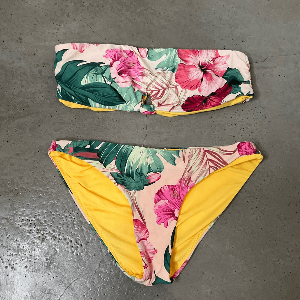 Rip Curl Hanalei Bay Cheeky Bikini Cheeky bottom Bandeau top Color: Yellow and Green Size: XS Excellent Condition