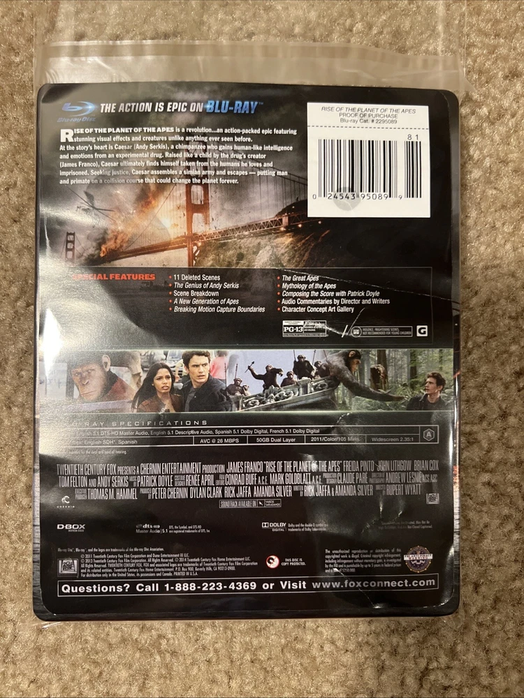 Genre: Science Fiction Sub-Genre: Creatures/Monsters Edition: Steelbook Region Code: Blu-ray: A (Americas, Southeast Asia...) Type: Movie Studio: 20th Century Fox Format: Blu-ray UPC: 0024543950899 Movie/TV Title: Rise of the Planet of the Apes (Metalpak) (Tg) gtin13: 0024543950899