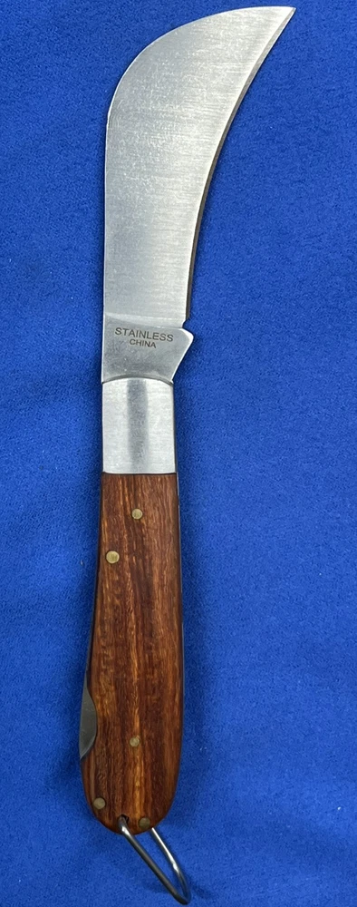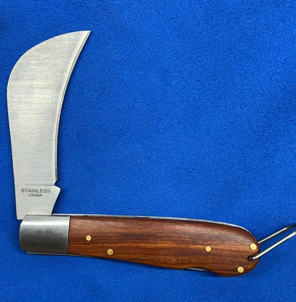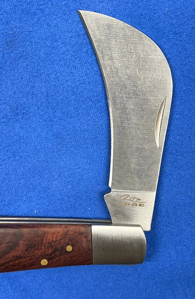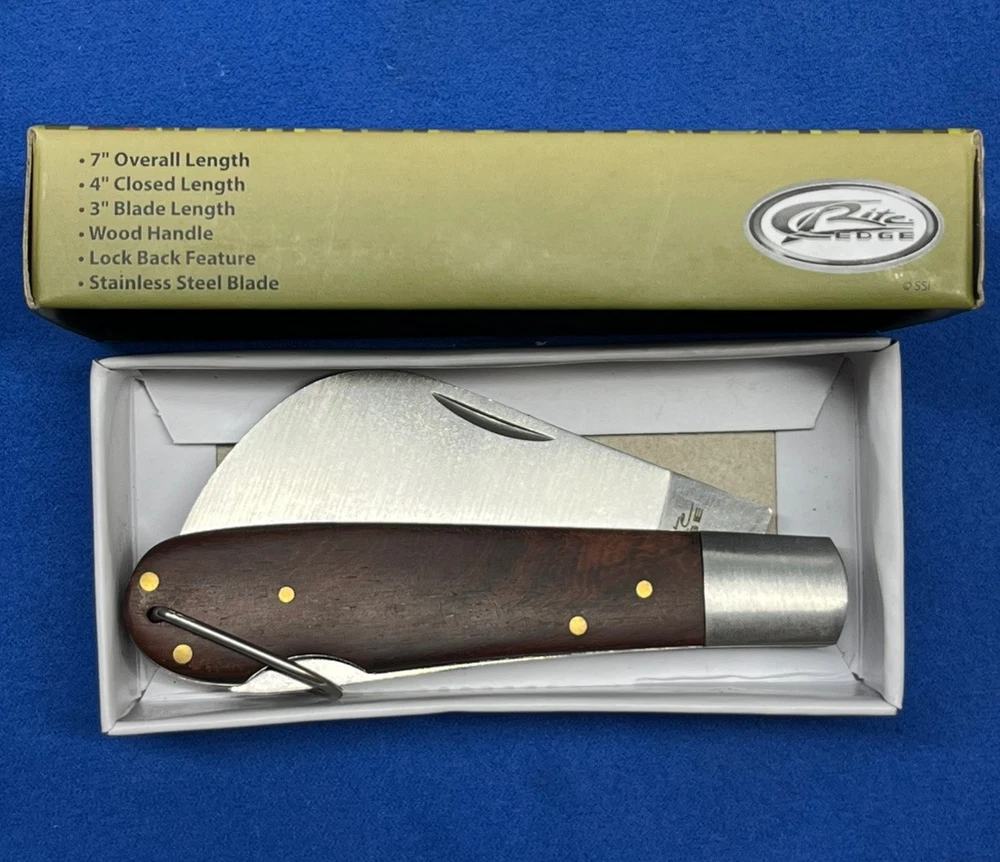 New in the box. The Rite Edge pruning lockback folding pocket knife features a sharp hawkbill curved stainless steel blade and wood handle. This knife is a manual folding knife. Type: Rite Edge Hawkbill Pruning Lockback Folding Pocket Knife Blade: Hawkbill Stainless Steel Curved Blade Handle: 4" Wood Handle Mechanism: Manual Folding Lockback Knife All items ship in a box within 24 hours of payment. Message me if you’d like more pictures or have any questions.