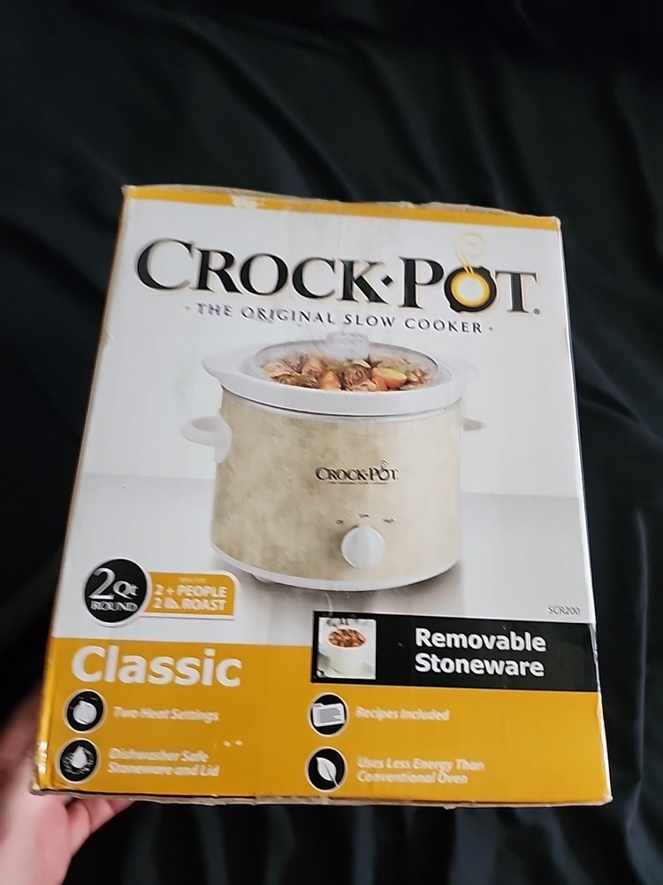 Elevate your cooking experience with the Rival 2 Qt Quart Small Crock Pot Stoneware Slow Cooker, Model SCR200. Perfect for crafting hearty stews, succulent roasts, or even baking, this versatile appliance is an essential addition to any kitchen. Its beige stoneware base paired with a white ceramic insert offers a warm, inviting touch to your countertop. This electric slow cooker features a 100 W power rating and two settings/programs for easy operation. The 2-quart capacity is ideal for serving-sized portions, and the 7-1/2" height and 10" width with handles make it a space-saving and convenient choice for any cooking space. Embrace the simplicity of slow cooking with this reliable and user-friendly Rival slow cooker. This Crock Pot is brand-new, never opened and fully sealed.