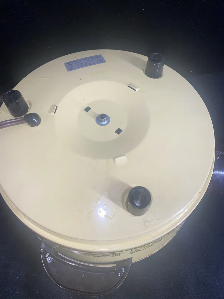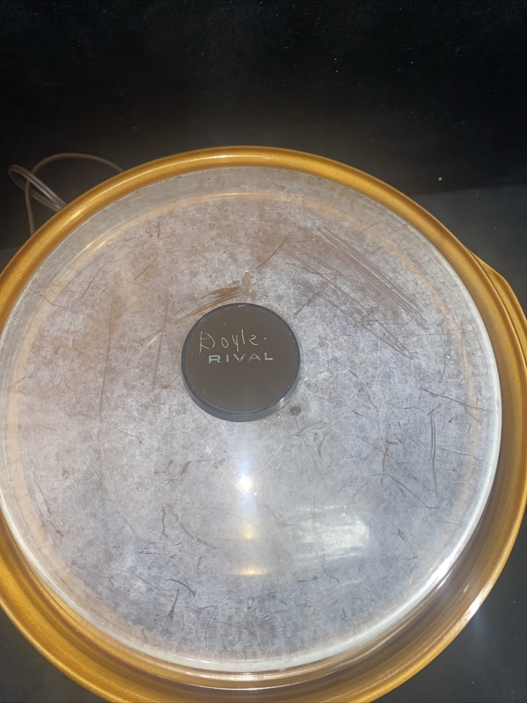 Introducing the Rival 3350 5 Quart Crock-Pot Slow Cooker, a versatile and reliable kitchen appliance perfect for cooking up delicious meals. This slow cooker features a removable stoneware pot, lid, and base, making it easy to use and clean. With a power of 250 W and 2 settings/programs, you can cook your meals to perfection. The Crock-Pot brand is known for its quality and durability, and this model is no exception. Its 5 qt capacity allows you to cook larger meals, while its yellow color adds a pop of fun to your kitchen. This slow cooker is perfect for those who enjoy home-cooked meals without the hassle. Has staining/ residue/ scratching/ wear to finish. Lid is hazy and has name scratched in handle. Still works perfectly