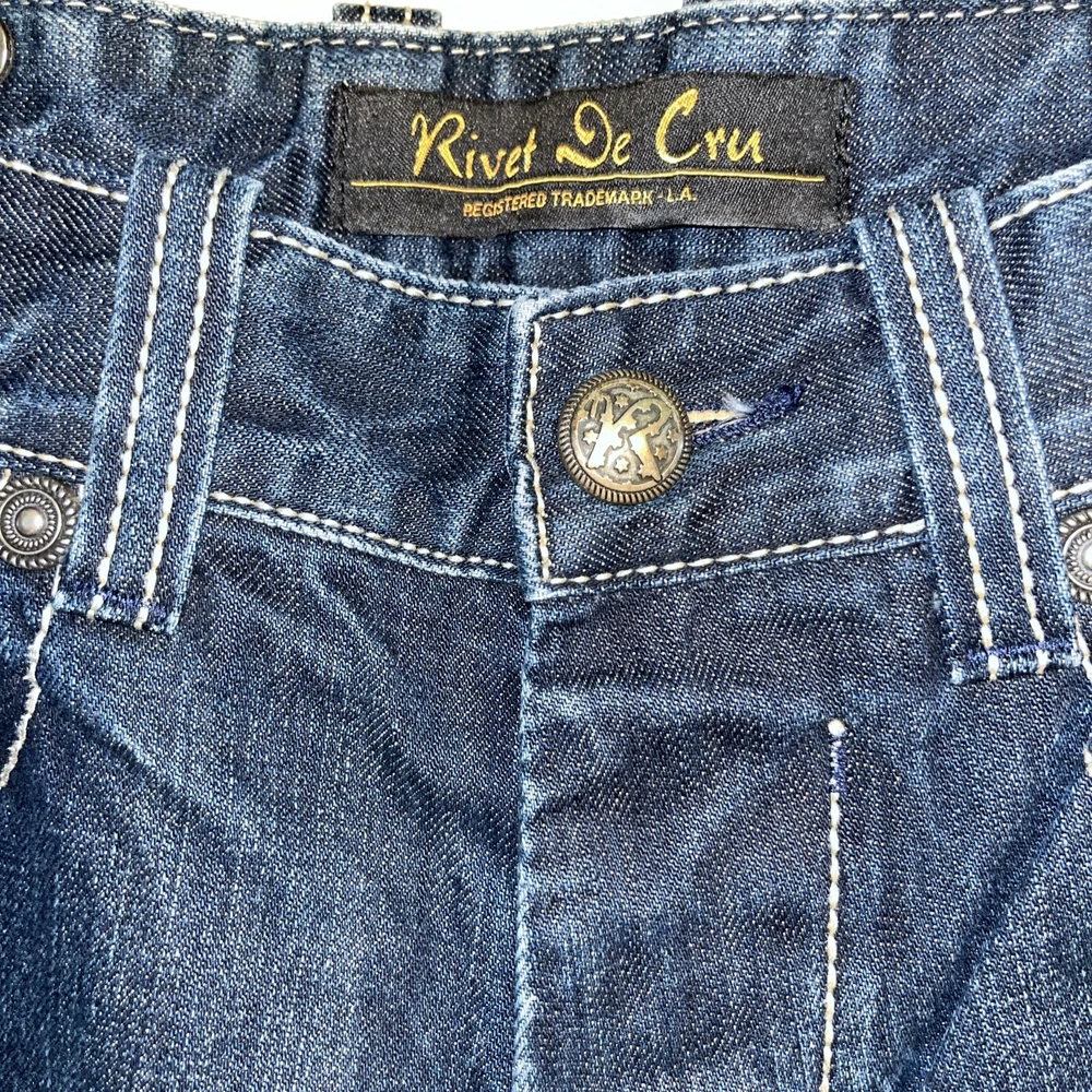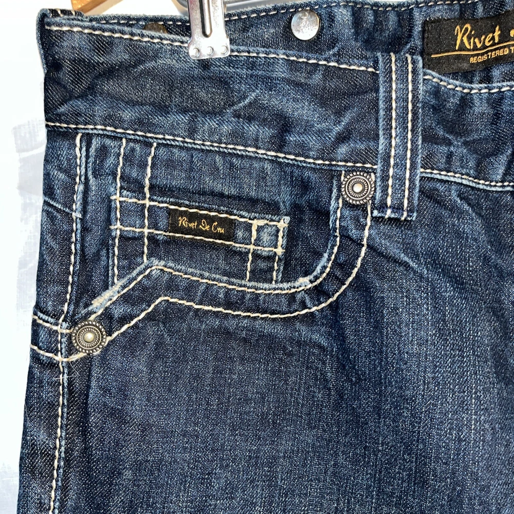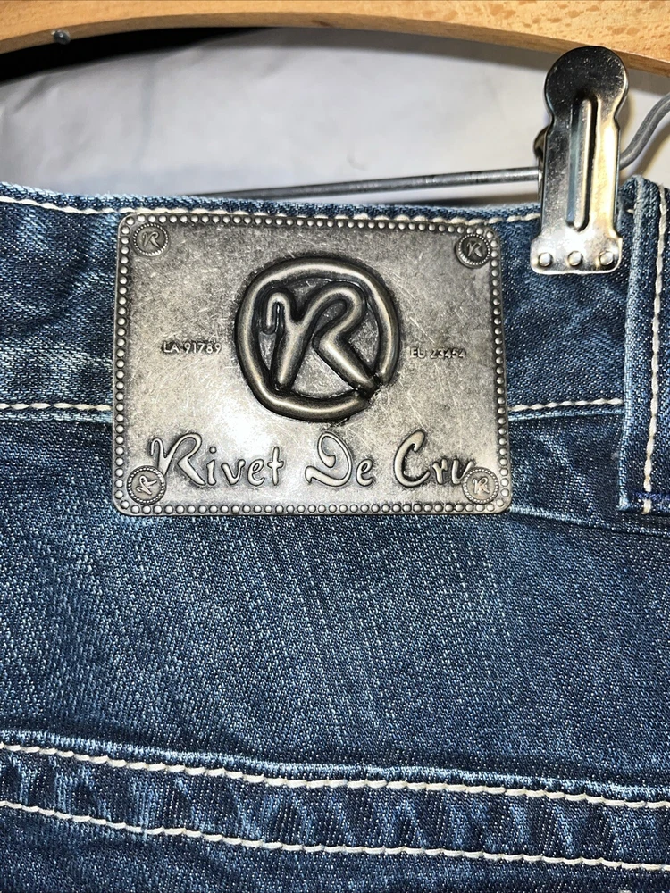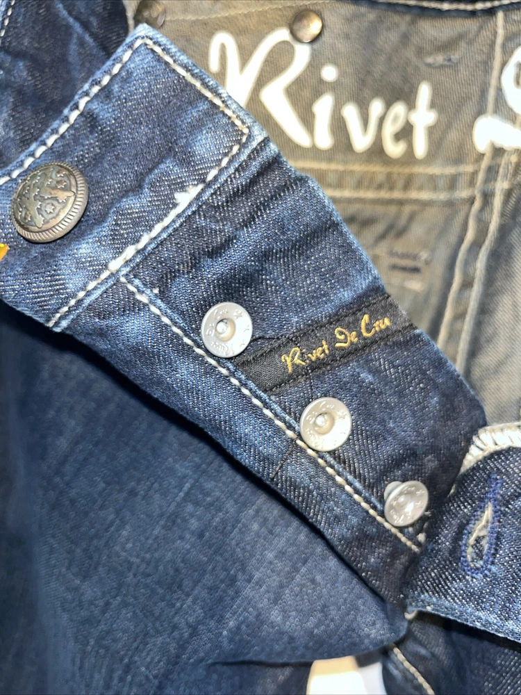 Rivet De Cru Size 31 Dark Denim Jeans Button Fly Distressed Whiskers