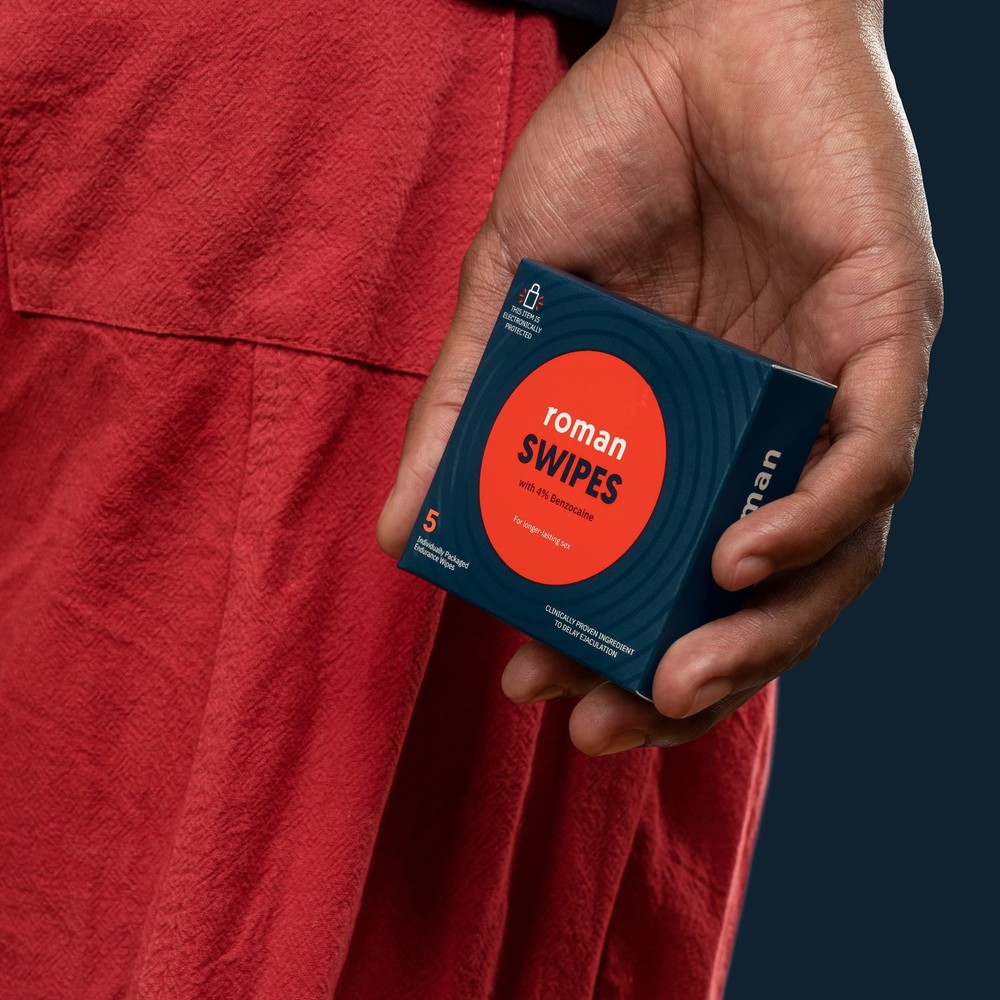 Ro Swipes | Fast-Acting, Convenient, Over-The-Counter 5 Count (Pack of 1) Product Details LAST 4X LONGER: Roman Swipes, with benzocaine, make you last 4x longer, helping reduce sensitivity so you can feel confident in your ability to perform. SUPPORT PERFORMANCE: Increase your stamina and endurance in bed.
