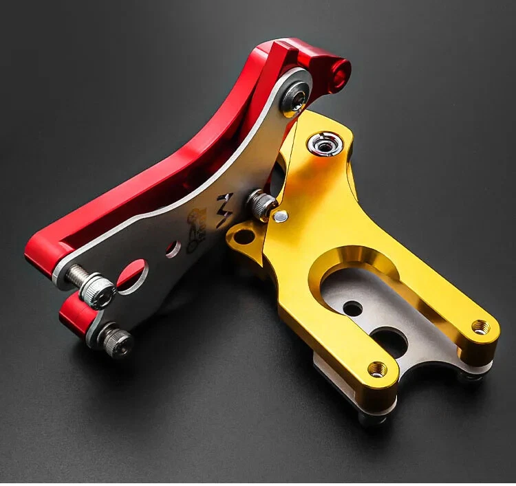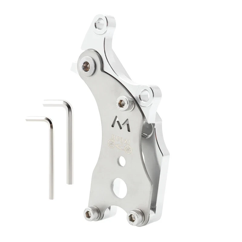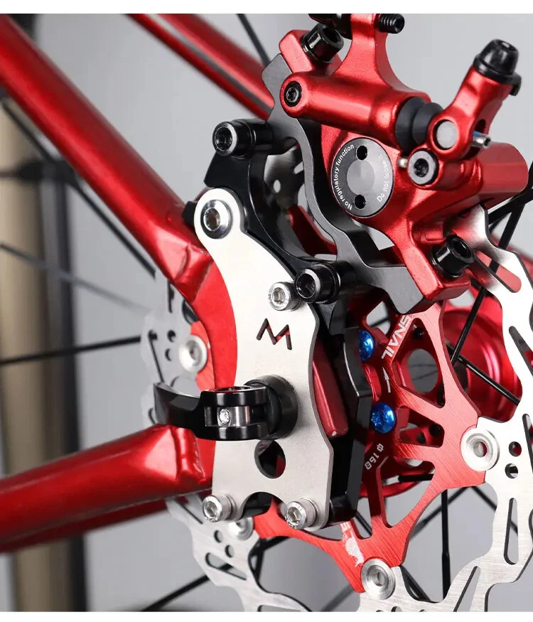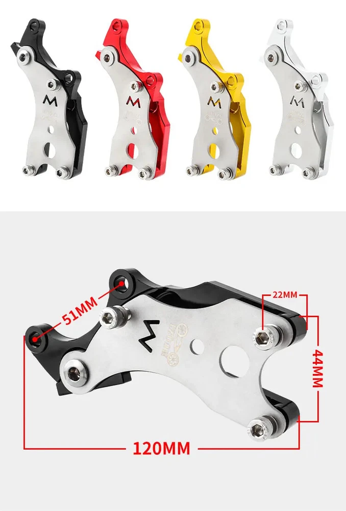 Disc Brake Adapter Material: Aluminum Alloy + Steel Size: 120x51x44Mm Color: Black/Red/Gold/Silver Net Weight: 123g Essential For Riding: The Disc Brake Adapter Can Upgrade The V Brake To a Disc Brake, Which Is a Perfect Modification Accessory. Professional And Practical Design. Durable: Made Of High-Quality Aluminum Alloy And Steel, High Strength And Long Service Life. Installation And Disassembly Are Very Convenient, And There Is No Need To Worry About Insufficient Hands-On Ability. Tips: Not All Road Bike Frames Can Be Installed. Please Confirm The Position Of The Rear Hook Of Your Frame Before Buying. Whether The Size Of The Triangle Area Of The Plane Is Similar To The Size In The Picture. If There Is a Big Difference, Please Do Not Buy It To Avoid Installation Failure. CNC Turning, Round And Smooth Edges Brilliant Color Four Colors Available 1: Preliminarily Fix The Conversion Seat 2: Install The Wheel Set 3: Fast Release Of Fixed Wheels 4: Adjust The Conversion, Lock The Quick Release 5: Tighten The Fixing Screws Of The Conversion Seat 6: Tighten The Fixing Screws Of The Conversion Seat 7: Tighten The Fixing Screws Of The Conversion Seat 8: Tighten The Screws After Adjusting The Disc 9: Complete