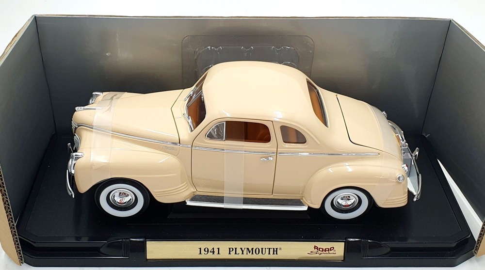 Road Signature 1/18 Scale Diecast 92398 - 1941 Plymouth - Cream Contact Us Home About Us Feedback Contact Us Add to favourites Road Signature 1/18 Scale Diecast 92398 - 1941 Plymouth - Cream click thumbnails above to enlarge Shop Home Our Feedback Ask a Question Product Description 1/18 Scale Diecast Model by ROAD SIGNATURE The MODEL is in EXCELLENT condition, previously displayed - The BOX is in GOOD condition, worn - SEE IMAGES FOR BEST DESCRIPTIONAND GRADING CONDITIONS Product Details Scale 1/18 Material Diecast Brand ROAD SIGNATURE EAN 7427043237553 Additional Info GRADING CONDITIONS MINT - The item is in perfect condition. NEAR MINT - Almost perfect, any imperfections will be extremely minor. EXCELLENT - The item will have had very careful use, with only small imperfections. GOOD - The item will have had more use, showing obvious imperfections. FAIR - The item will have heavy signs of wear, showing major imperfections. SPARES or REPAIR - The item will be in a poor condition. Payment Shipping Returns About Us Methods of Payment Our preferred method of payment is Paypal. Any questions please ask! Thanks. WORLDWIDE MAIL-ORDER SPECIALISTS Shipping within the UK is FREE OF CHARGE - Plese see the eBay postage tab for other worldwide shipping charges. We ship from our warehouse is the UK. We ship worldwide everyday using a Tracked / Signed For service. Over 30 years of experience shipping collectible models worldwide - you can trust our service. Any questions, please ask. Thanks for looking ! Returns We hope you are completely satisfied with your purchase. In the unlikely event that there is a problem / fault with the item we will happily provide you with a refund (excluding returns postage). About Us R.M.Toys Ltd is a family led company with over 50 years worth of experience specialising in high quality collectable models & worldwide delivery. We have continued to expand and develop as the retail market and technology has evolved and we are in no doubt we will need to continue with that trend so we hope we have been able to showcase our service and provide you, our customer, with everything you have required. Our aim is to ensure no matter what the model, we will provide an excellent service experience. To us, this means great availability, excellent customer service as well as quick & secure delivery, to anywhere across the world. All that is left to say is Thank You for taking the time to read our page and using our company to assist with your collection and gift needs - every order placed is gratefully received and as important to us as the next. Kind Regards The RM Toys Team R.M.Toys Ltd - All Rights Reserved || Design by Tapika Store The MODEL is in EXCELLENT condition, previously displayed - The BOX is in GOOD condition, worn - SEE IMAGES FOR BEST DESCRIPTIONAND GRADING CONDITIONS