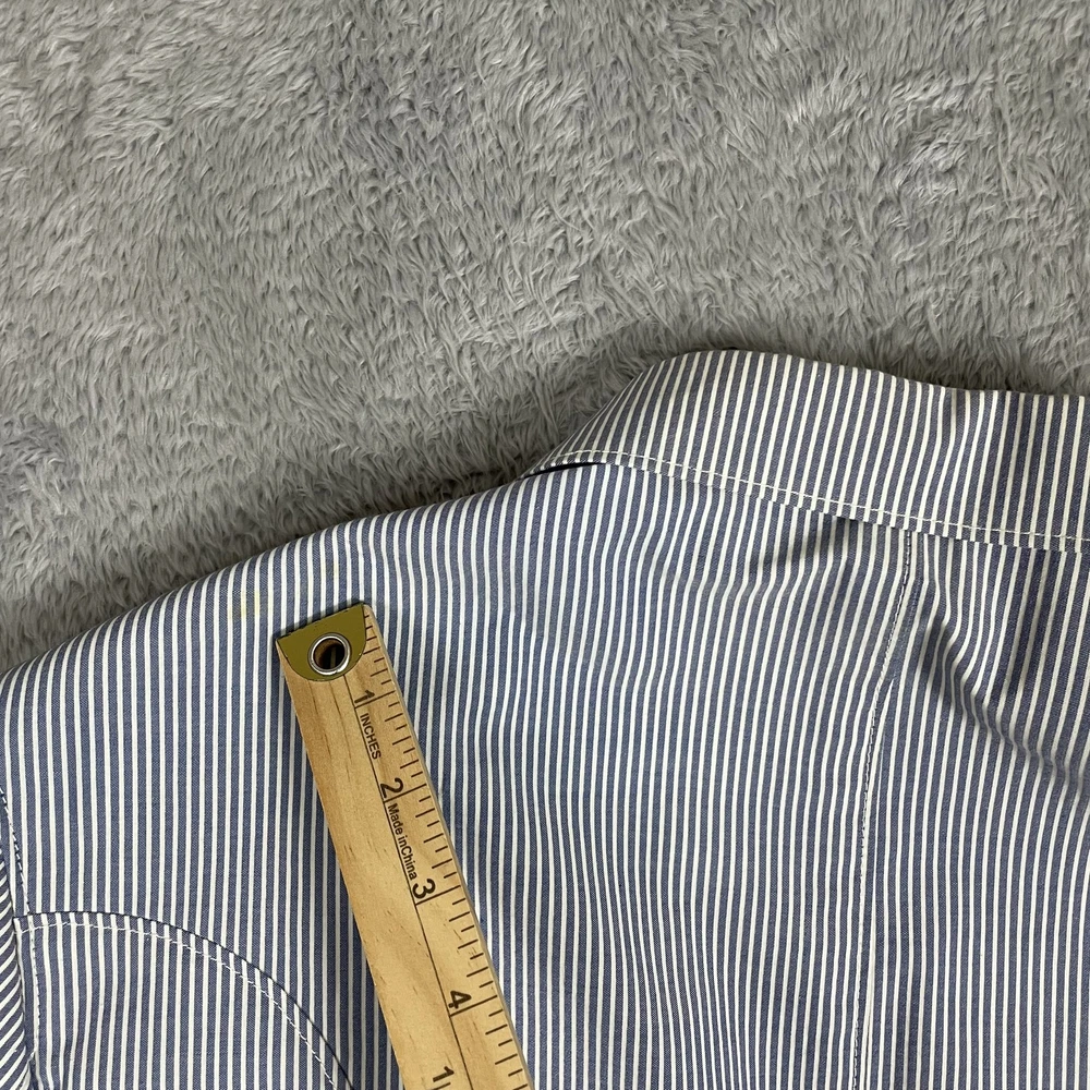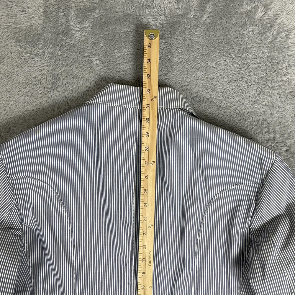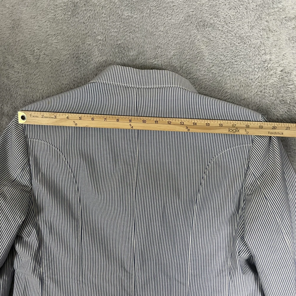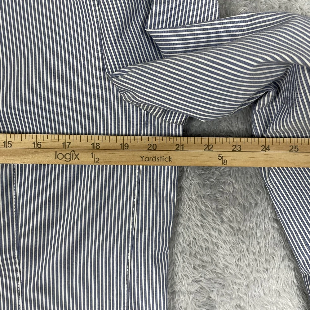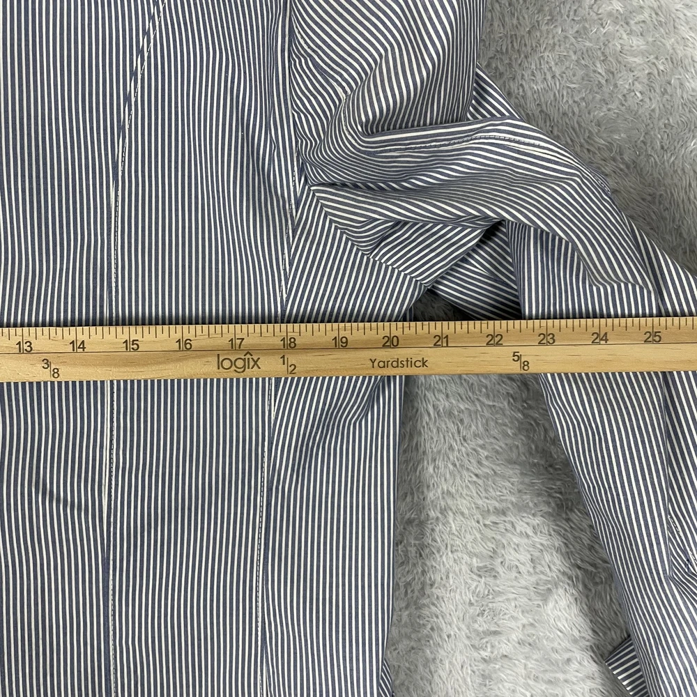 Robert Graham Blazer Mens 40 Blue White Stripe Cotton Sport Coat Modern Unique Condition: Gently worn, two small spots on the back of the shoulder near the collar Material: 100% Cotton Size: 40 (mens) Color: Blue and white with fine vertical pinstripes Features a two-button front closure, double vent back, and four decorative cuff buttons Signature Robert Graham colorful embroidered logo on inside neck Bespoke-inspired contrasting blue artistic lining and interior details Interior embroidery reads "Knowledge Wisdom Truth" Distinctive Robert Graham engraved buttons and contrast sleeve lining Made in Indonesia Approximate measurements are visible in photos for full reference Perfect for dressy events, casual business wear, or making a bold style statement