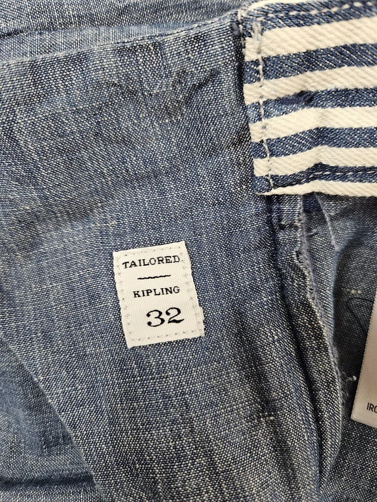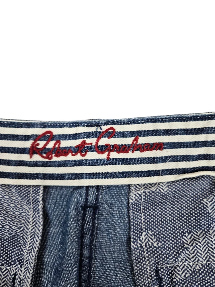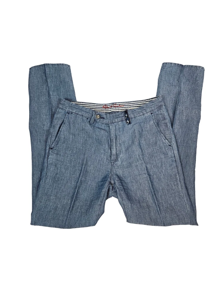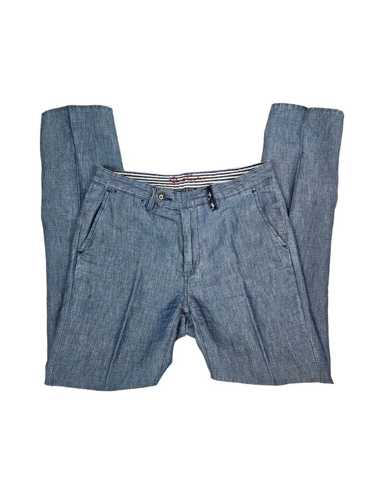 Robert Graham Tailored Kipling Blue Chambray Straight Leg Pants Size 32 Men V39 In excellent condition Robert Graham Tailored Kipling Blue Chambray Straight Leg Pants Size 32 Men's. Features Robert Graham tailored kipling casual pants in blue chambray, extended tab button closure with zipper, 2 front slash pockets, 2 back welt pockets with button closure, straight leg, lightweight, preppy casual style. Measurements laying flat waist 16" front rise 10.5" hips 20" inseam 33" leg opening 7" Fabric cotton, linen This is a pre-owned item that may show signs of wear. In excellent condition, no flaws.